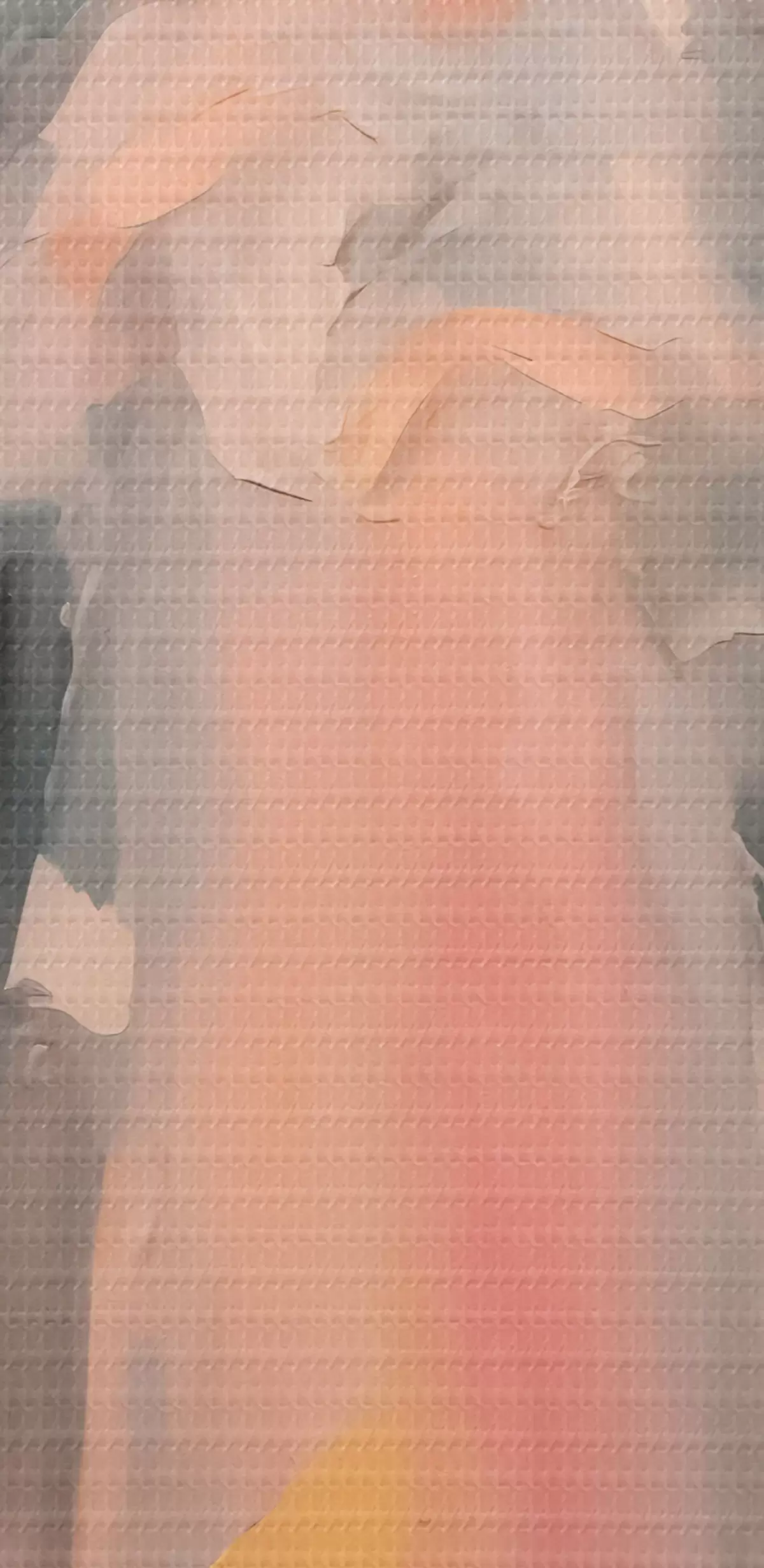 Selle lõuendi peenike niidipunus meenutab professionaalse kunstniku lõuendi pinda.