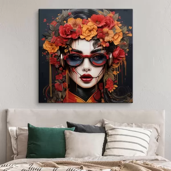 Maalid Naine lilledega peas, tänavakunsti stiilis Nr s43362