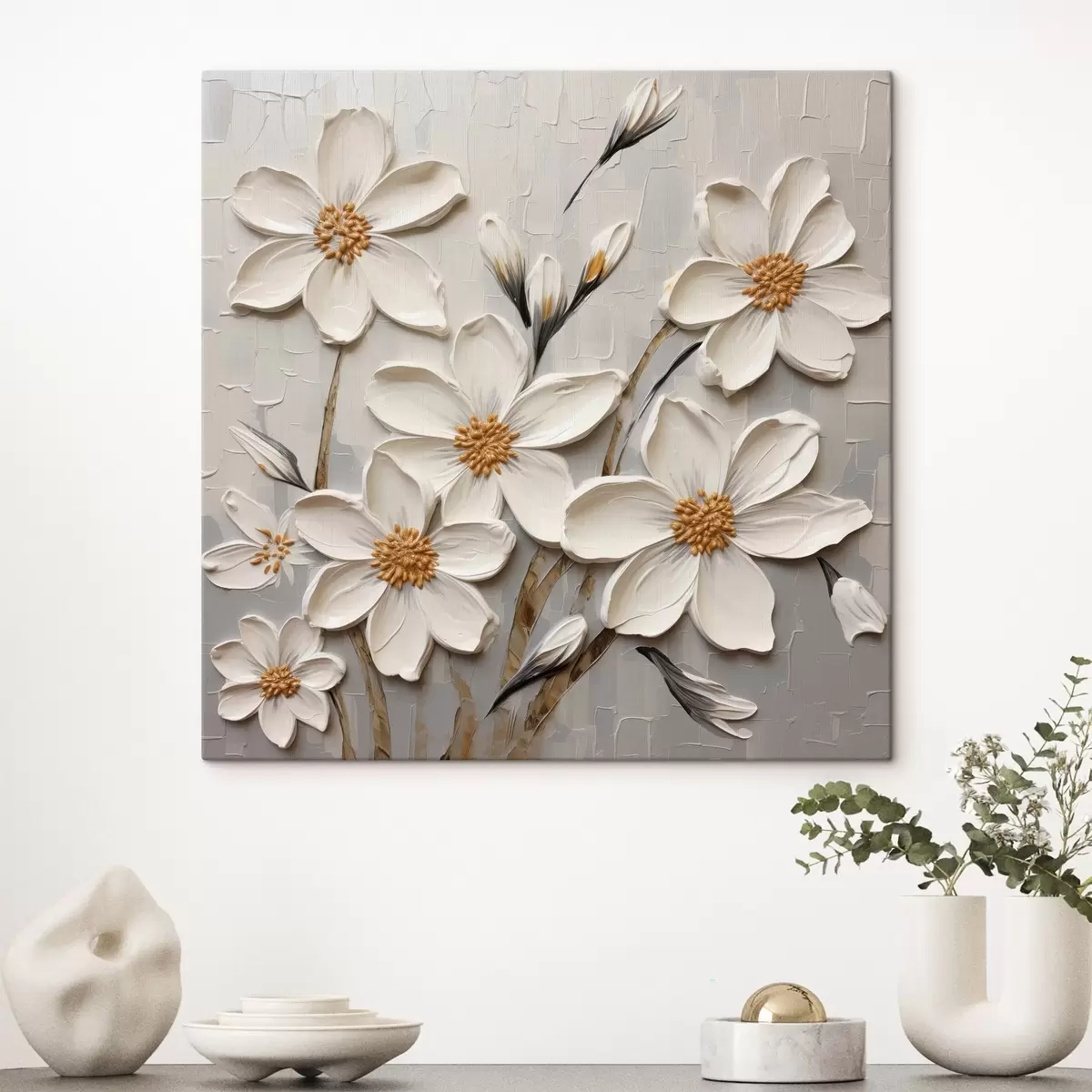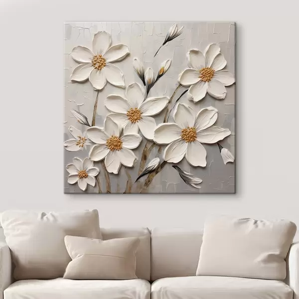 Maalid Valged mahukad lilled maalimisstiilis suurte pintslitõmmetega Nr s43366