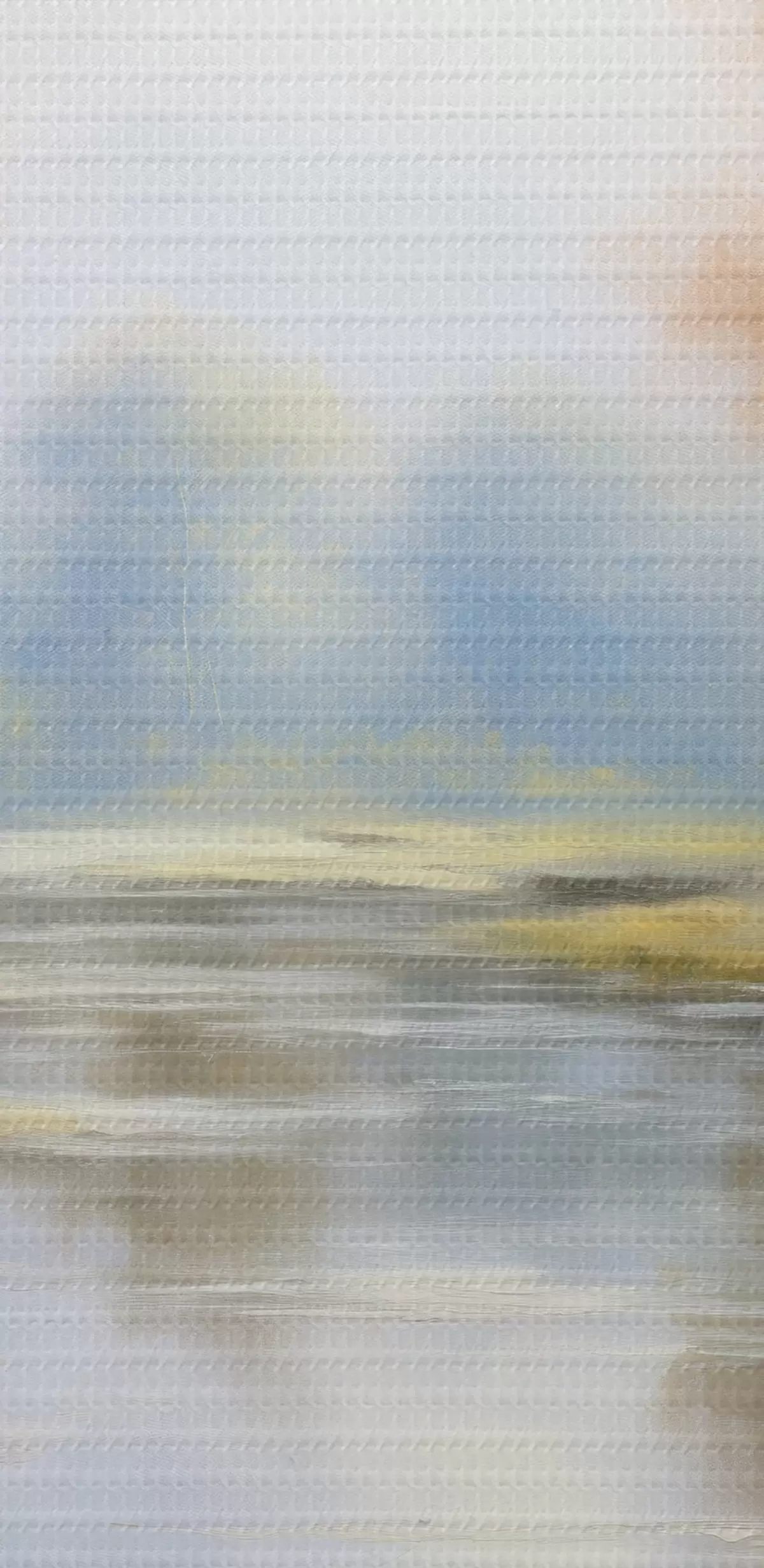 Selle lõuendi peenike niidipunus meenutab professionaalse kunstniku lõuendi pinda.