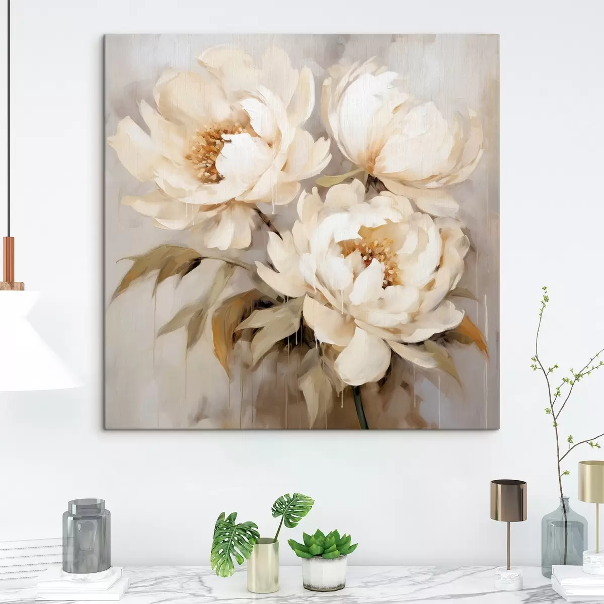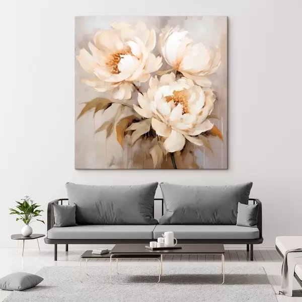 Maalid Õrnad pojengid neutraalsetes toonides abstraktses maalimisstiilis Nr s43387