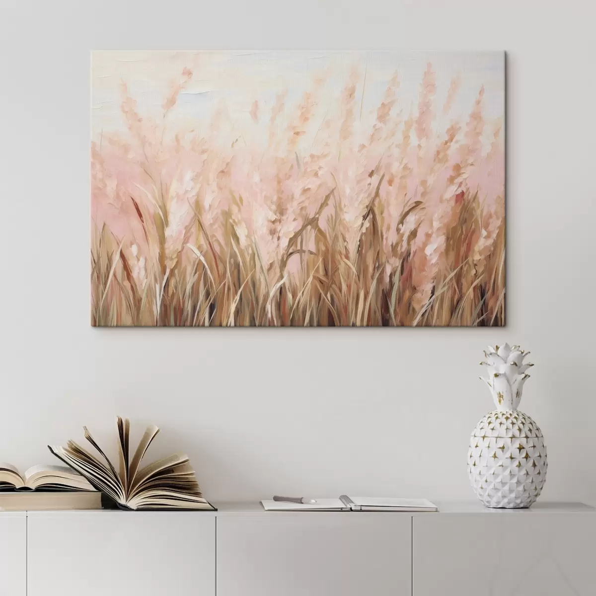 Maalid Pampas roosa ja pruunide toonidega rohuvälja, pehmed pintslitõmbed, abstraktne õlimaali kunstimitatsioon Nr s43403