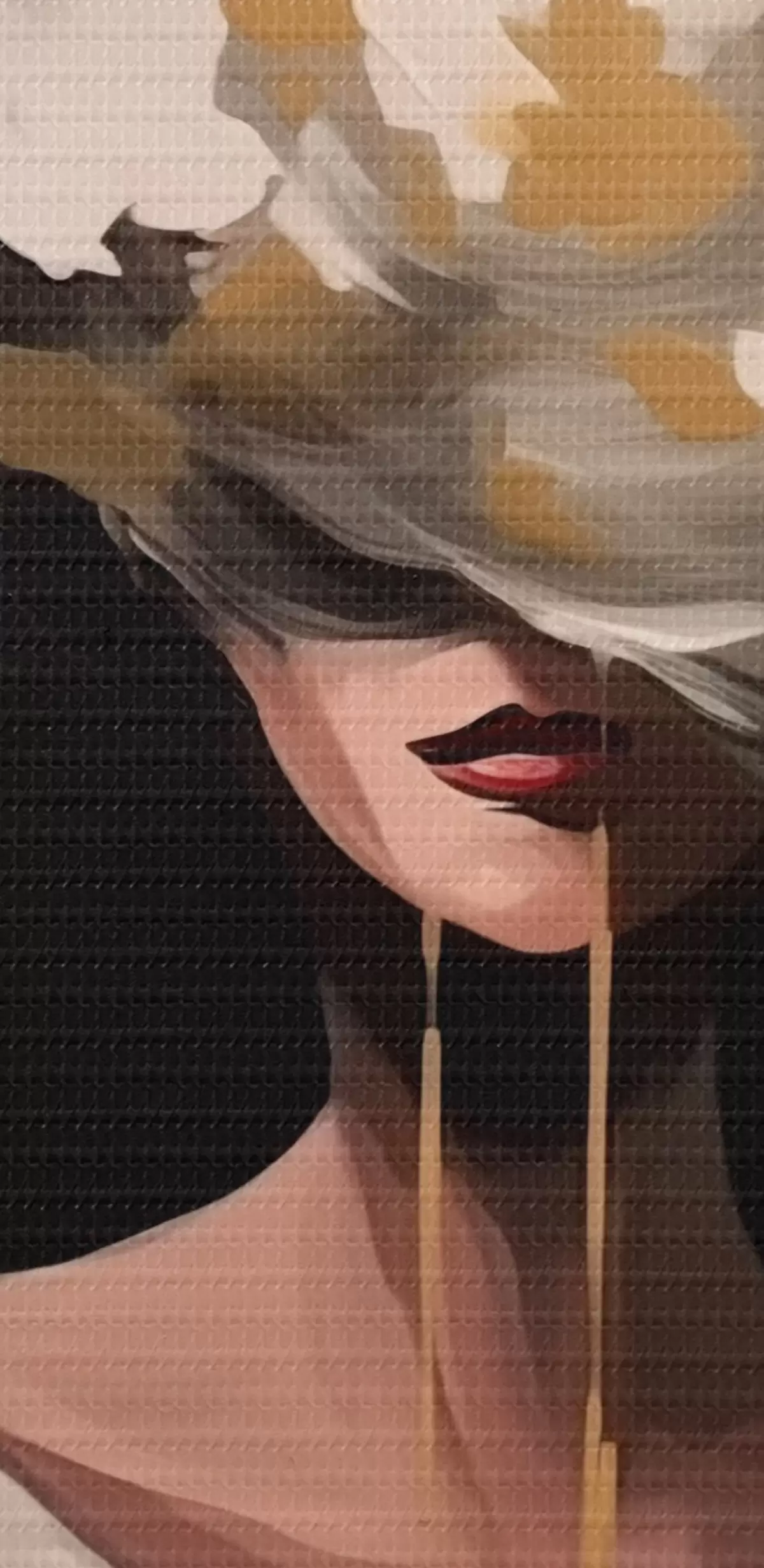Selle lõuendi peenike niidipunus meenutab professionaalse kunstniku lõuendi pinda.