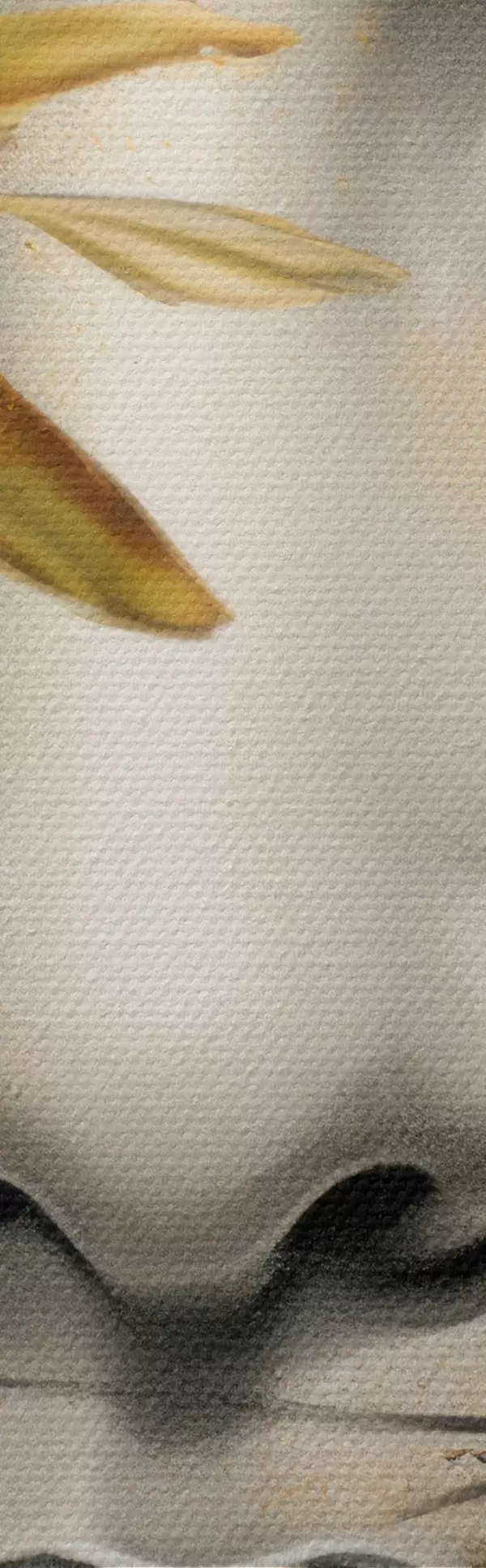 Selle lõuendi peenike niidipunus meenutab professionaalse kunstniku lõuendi pinda.