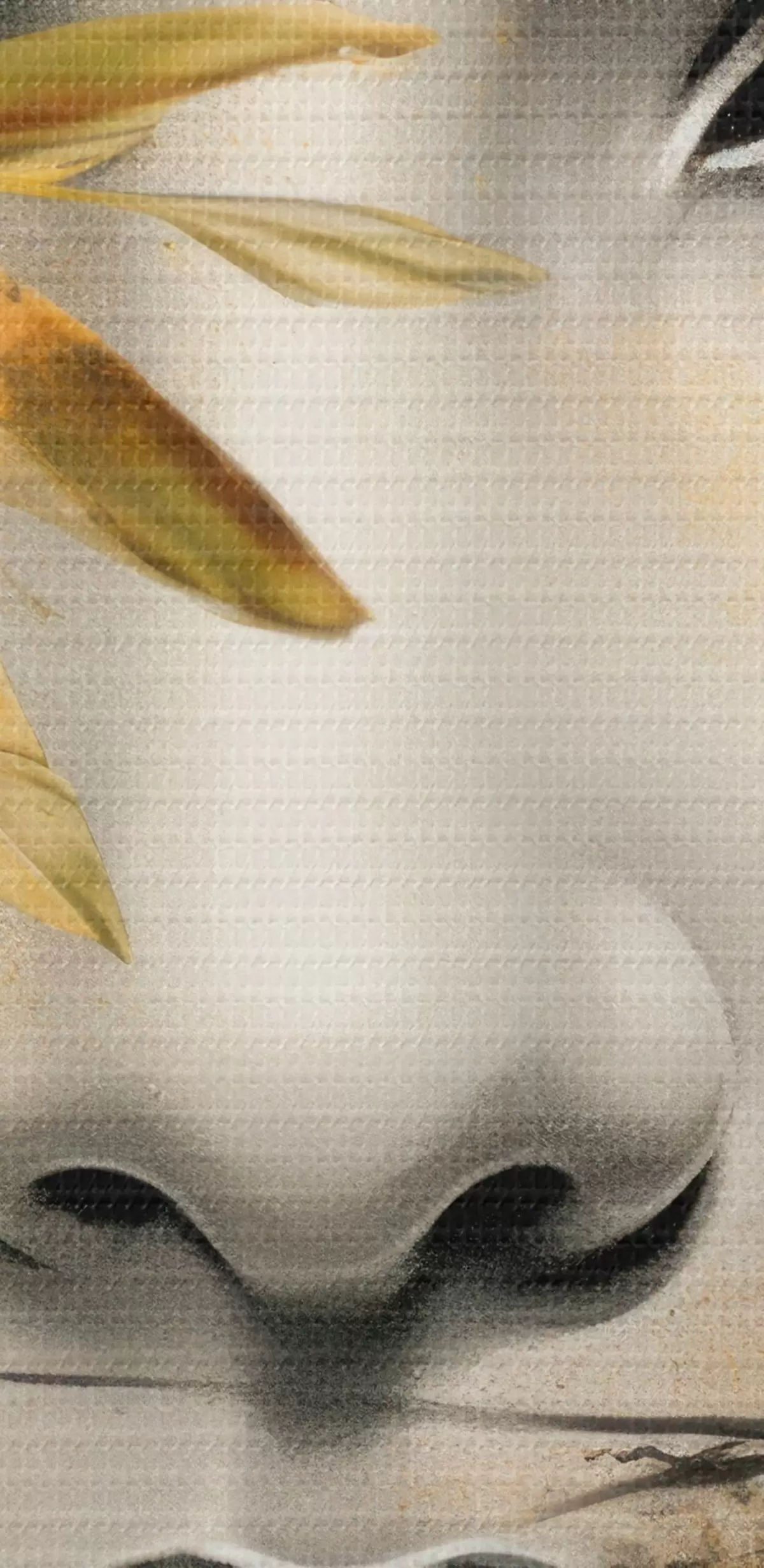 Selle lõuendi peenike niidipunus meenutab professionaalse kunstniku lõuendi pinda.