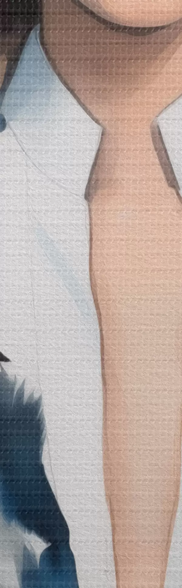 Selle lõuendi peenike niidipunus meenutab professionaalse kunstniku lõuendi pinda.