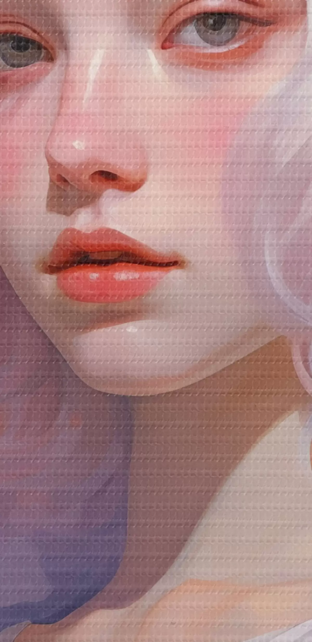 Selle lõuendi peenike niidipunus meenutab professionaalse kunstniku lõuendi pinda.