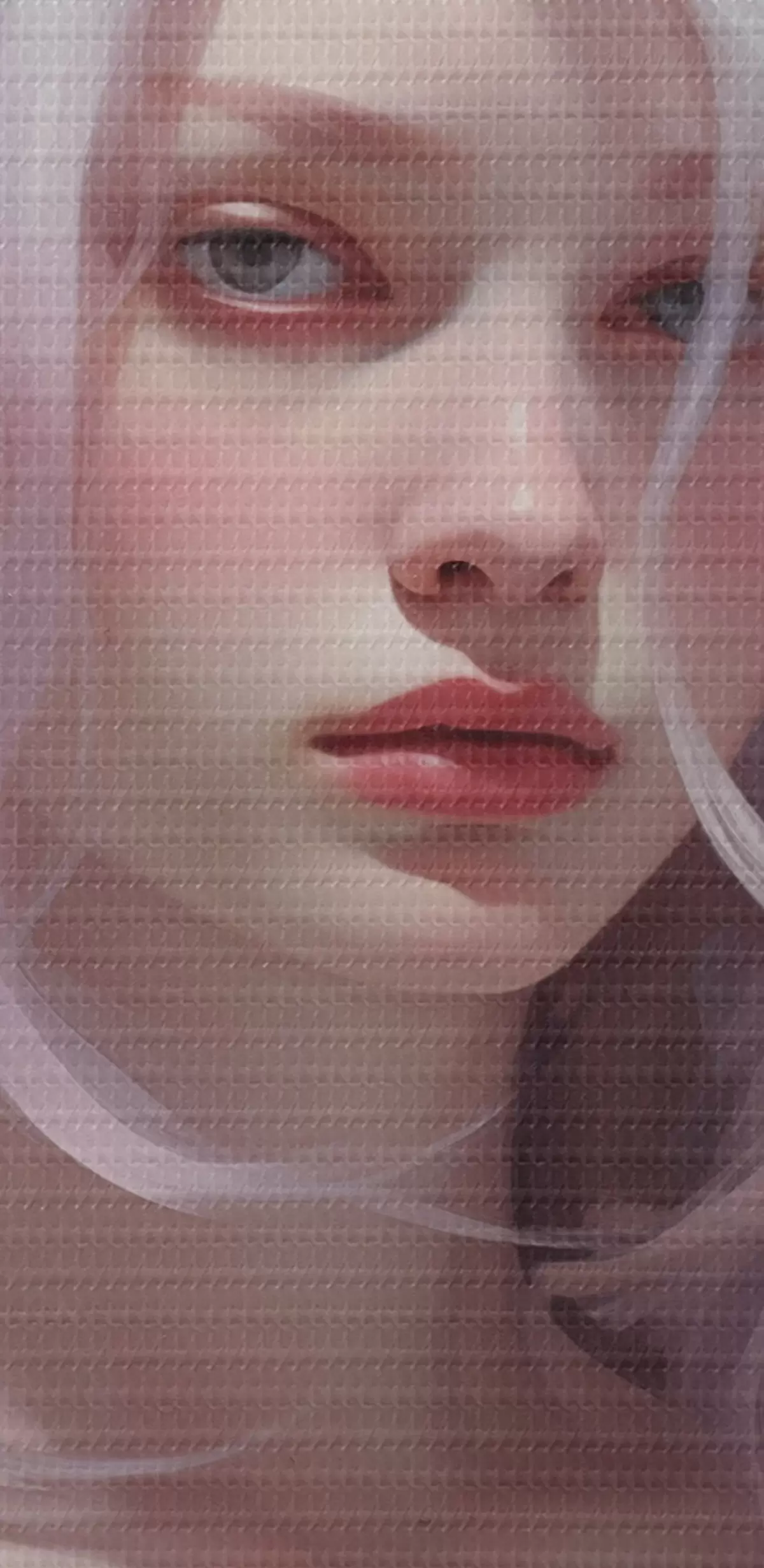 Selle lõuendi peenike niidipunus meenutab professionaalse kunstniku lõuendi pinda.