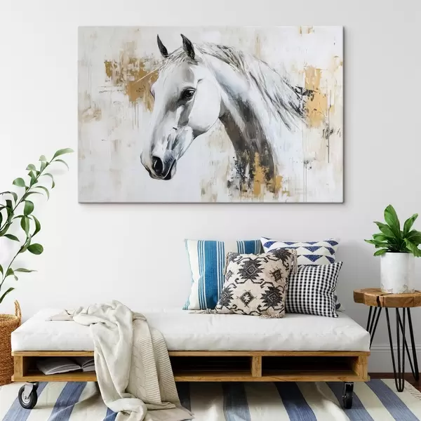 Maalid Valge hobune, õlistiilis joonistus, loomad, erksad pintslitõmbed Nr s43497