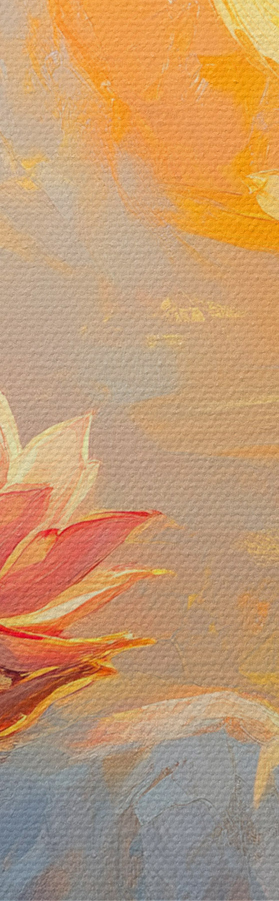 Maalid Naine lootoslillega päikeseloojangul, valge lind, õlistiilis joonistus Nr s43501