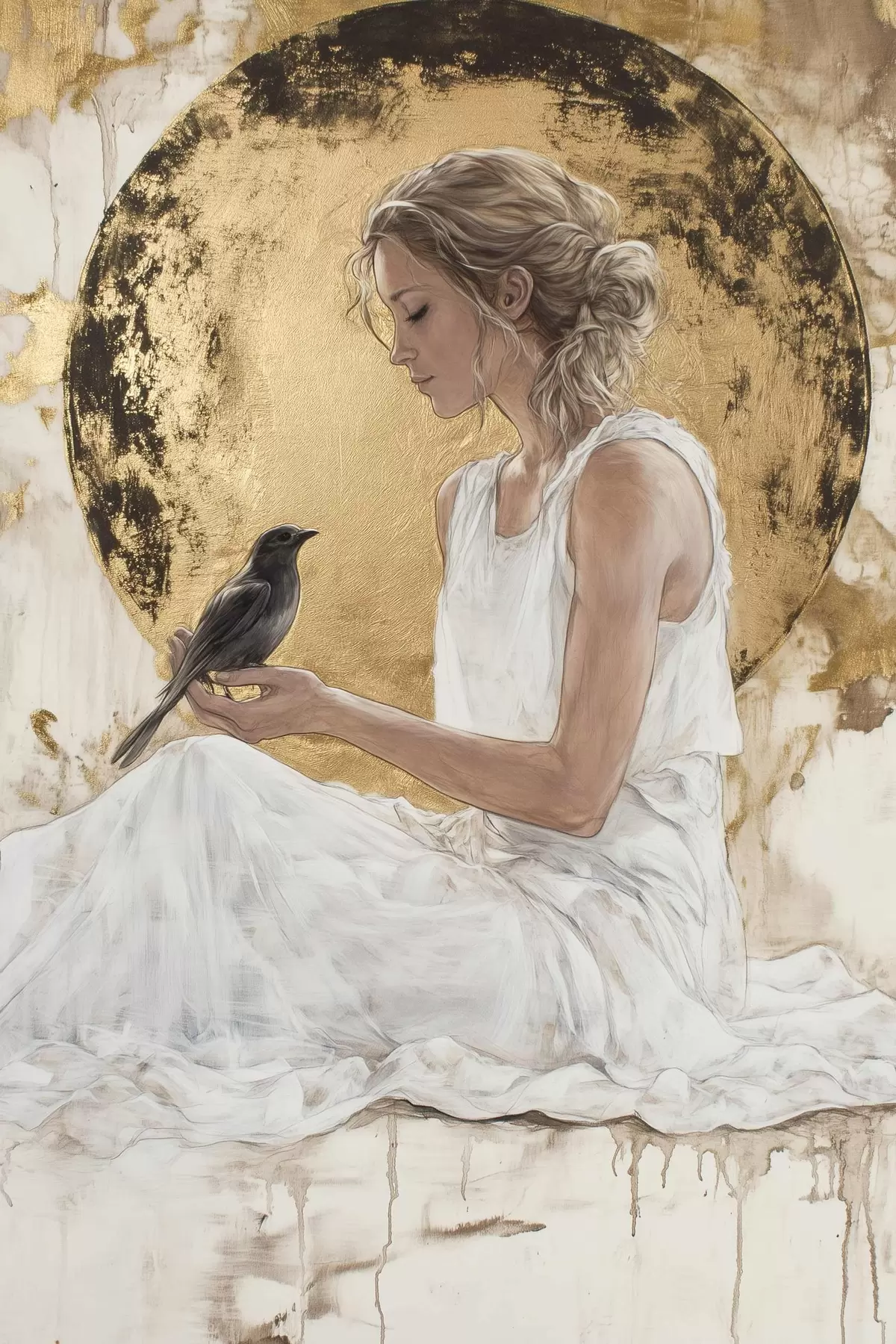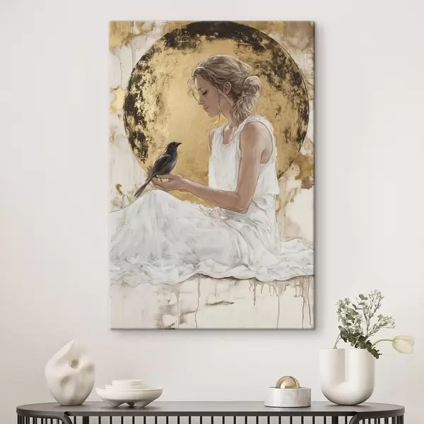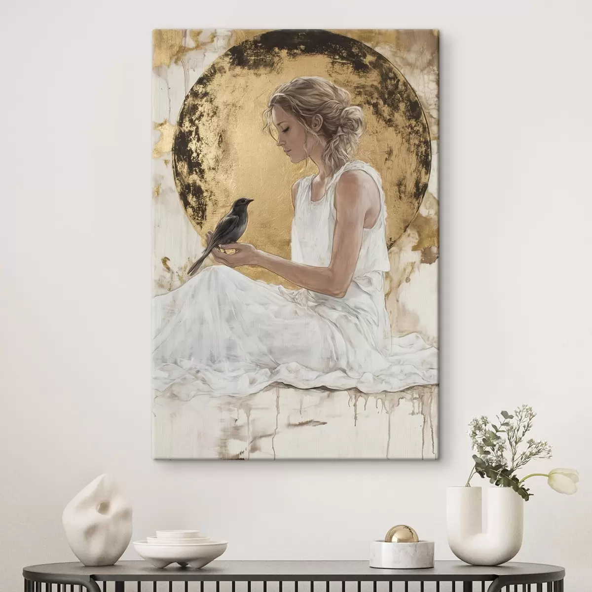 Maalid Ilus naine koos linnuga, Kreeka, akrüülstiilis joonistus Nr s43503