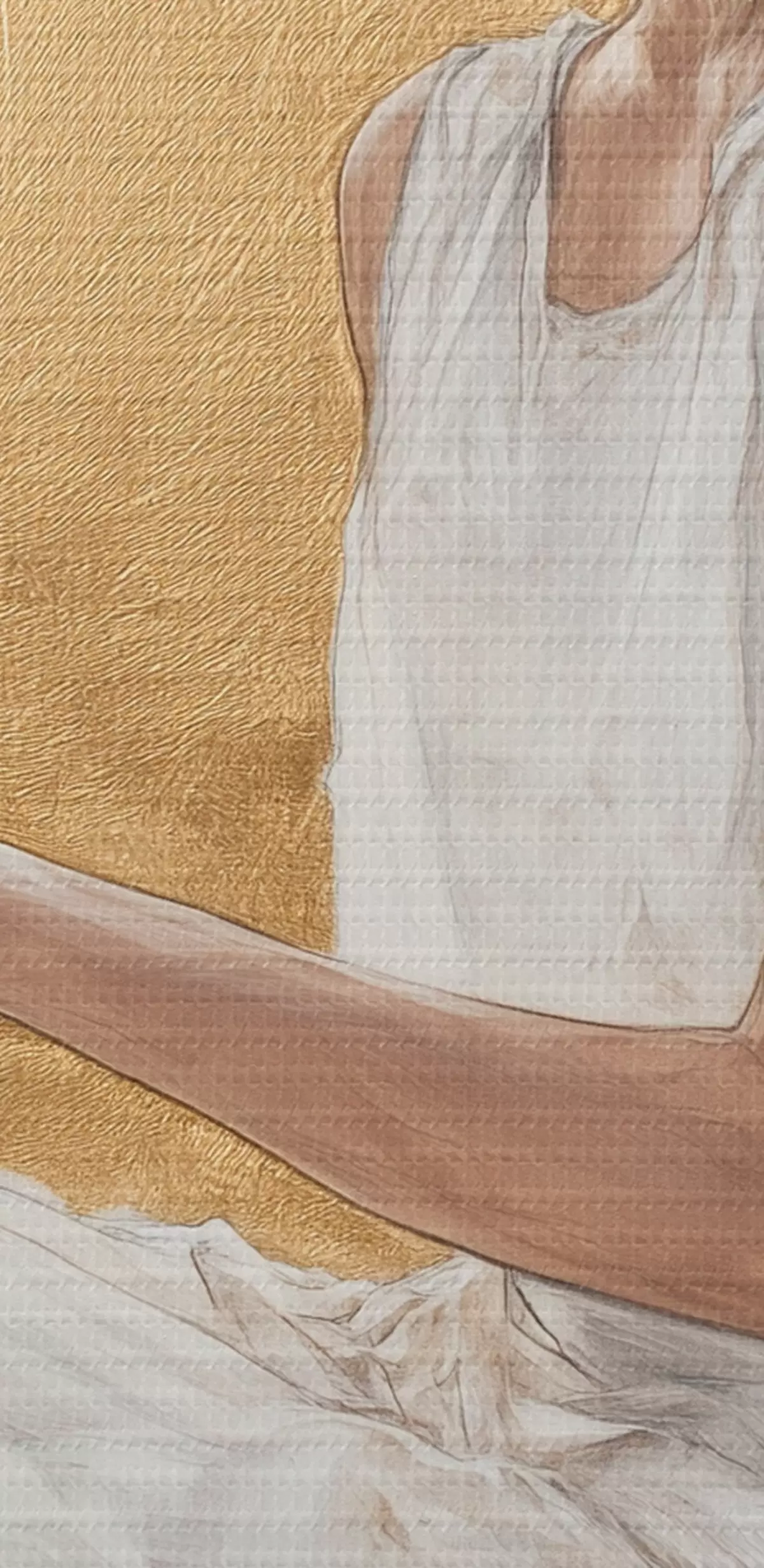Selle lõuendi peenike niidipunus meenutab professionaalse kunstniku lõuendi pinda.