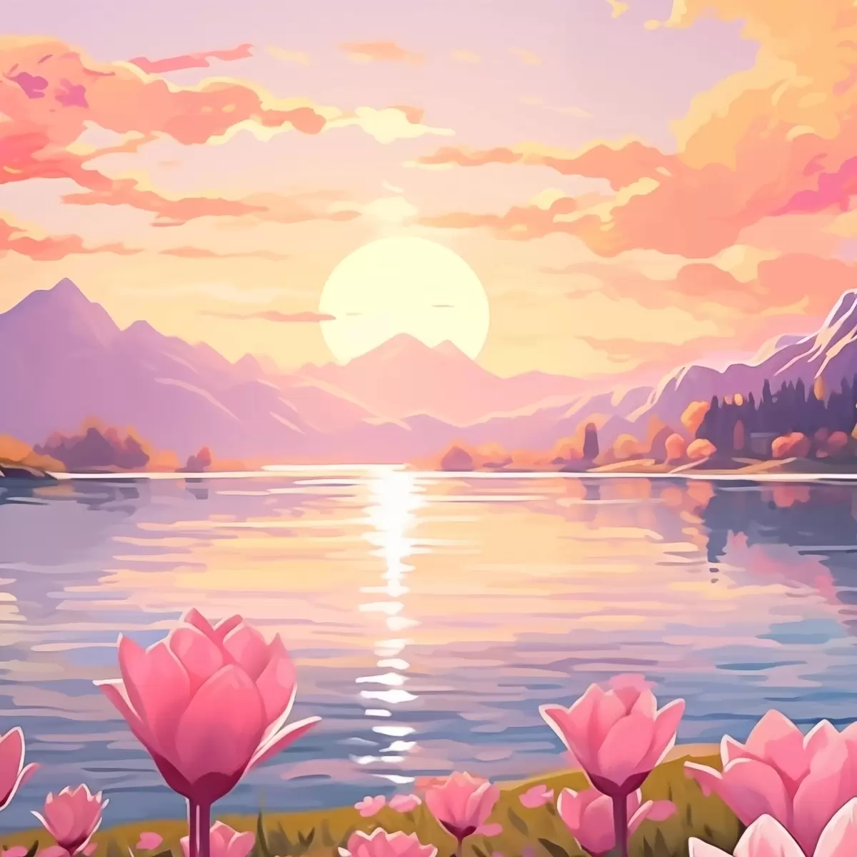 Maalid Maastik koos tiigiga mägede taustal Nr s43523