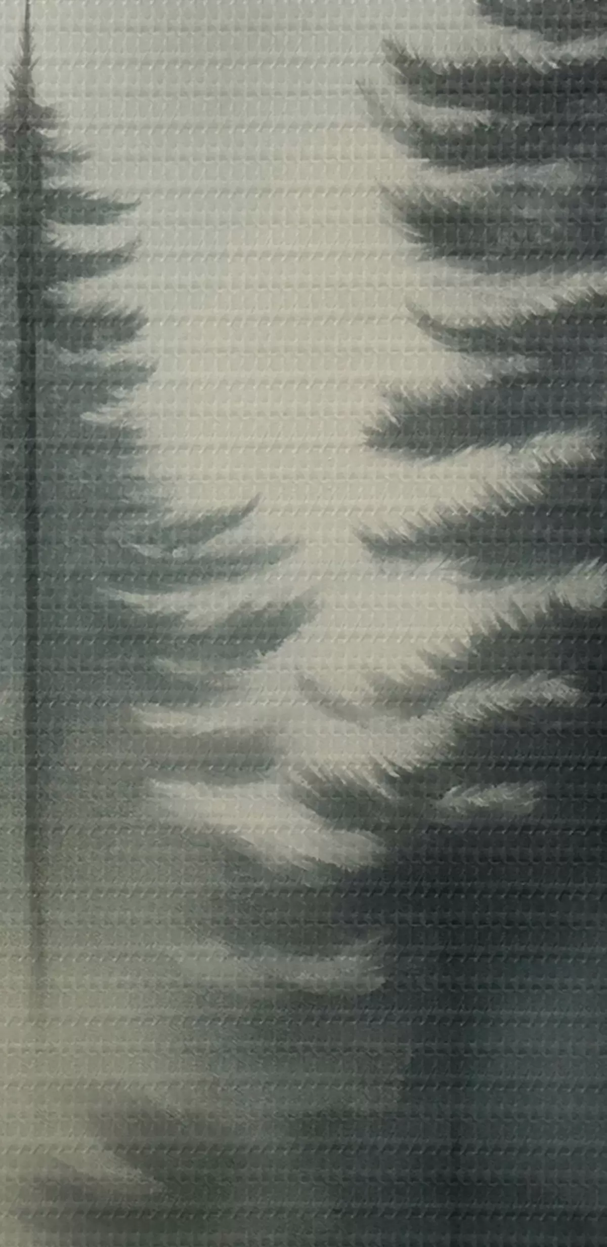 Selle lõuendi peenike niidipunus meenutab professionaalse kunstniku lõuendi pinda.