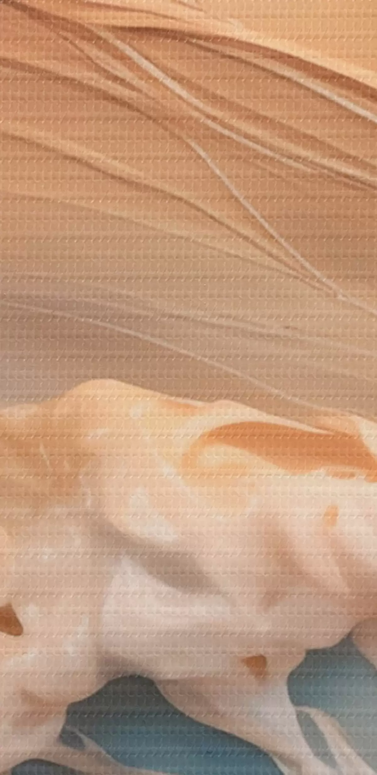 Selle lõuendi peenike niidipunus meenutab professionaalse kunstniku lõuendi pinda.
