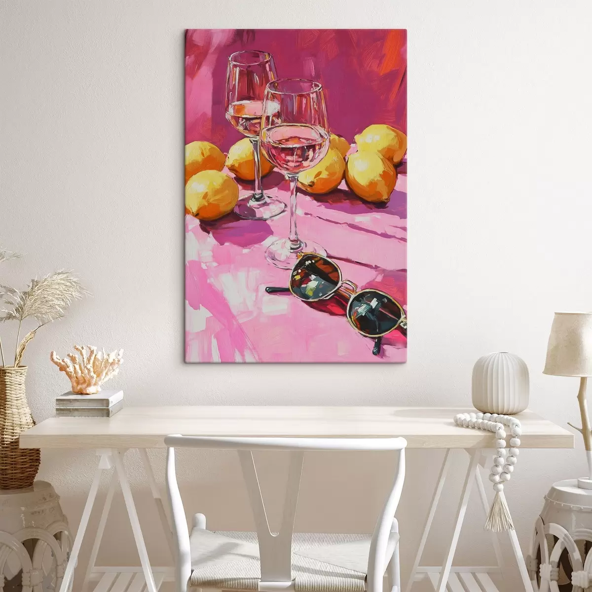 Maalid Õlistiilis abstraktsioon koos joogiklaaside, sidrunite ja päikeseprillidega Nr s43884