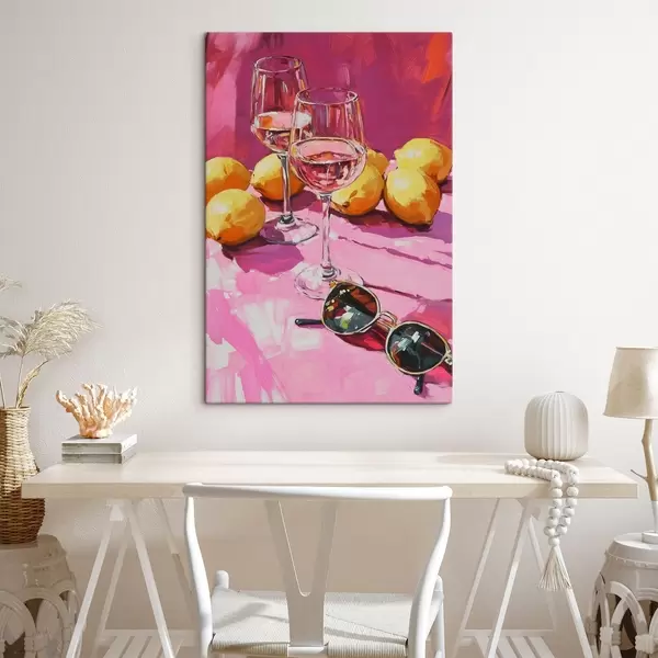 Maalid Õlistiilis abstraktsioon koos joogiklaaside, sidrunite ja päikeseprillidega Nr s43884