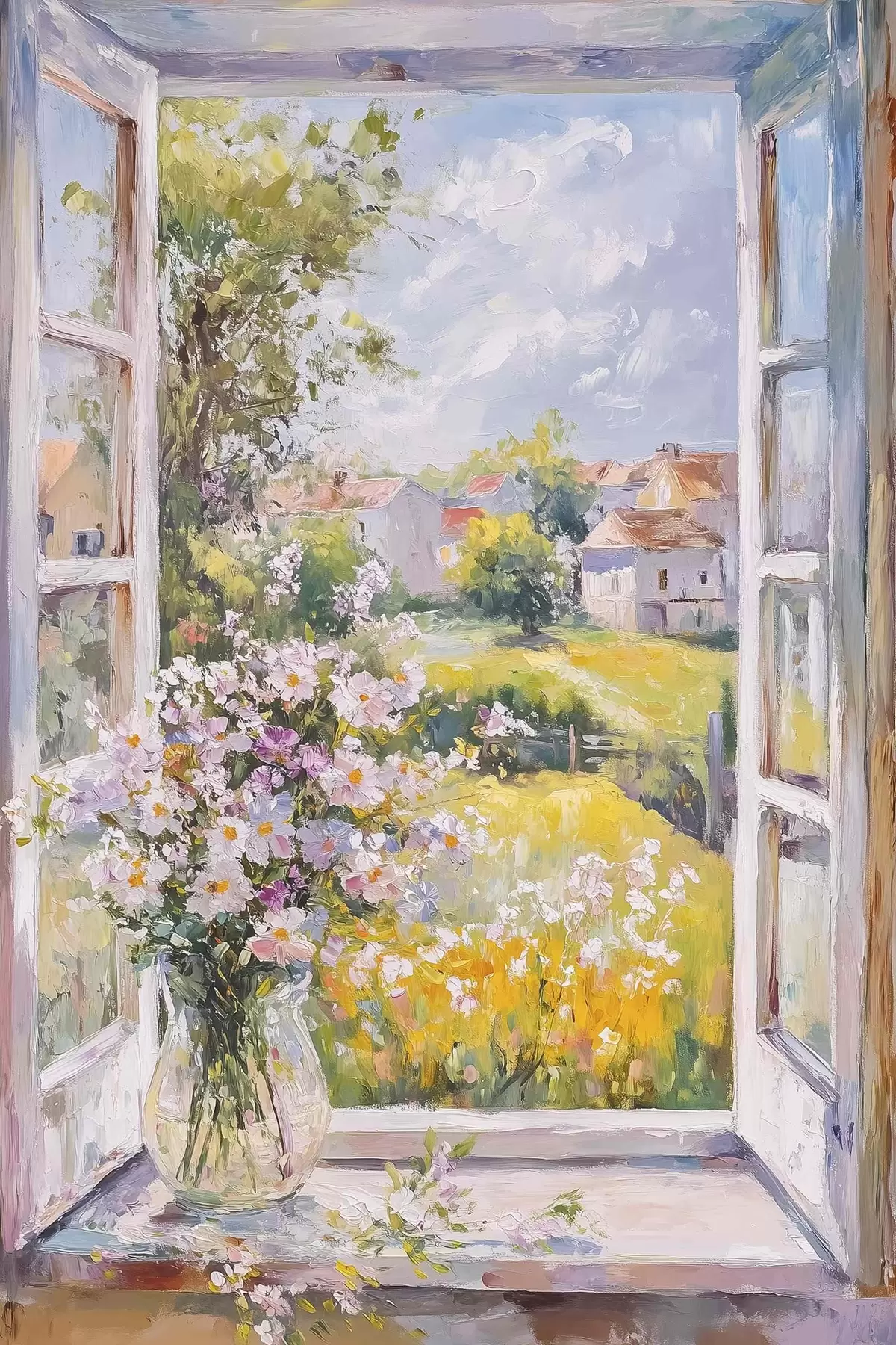 Maalid Suvi külas, maaliline, õlistiilis joonistus, lilled vaasis Nr s43889