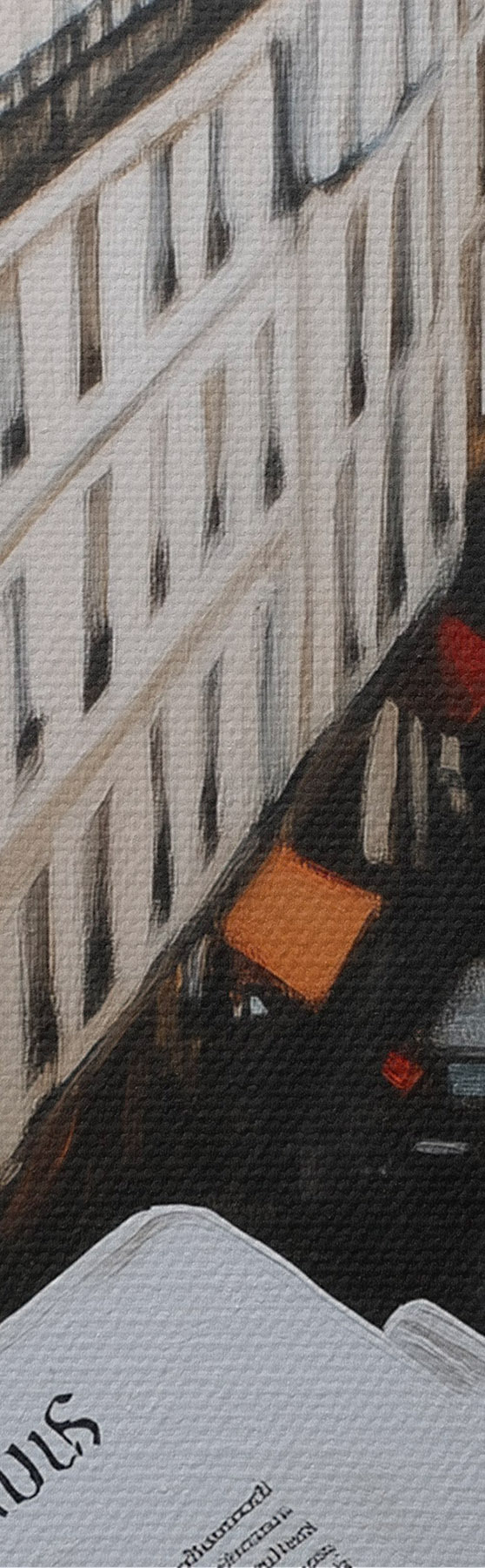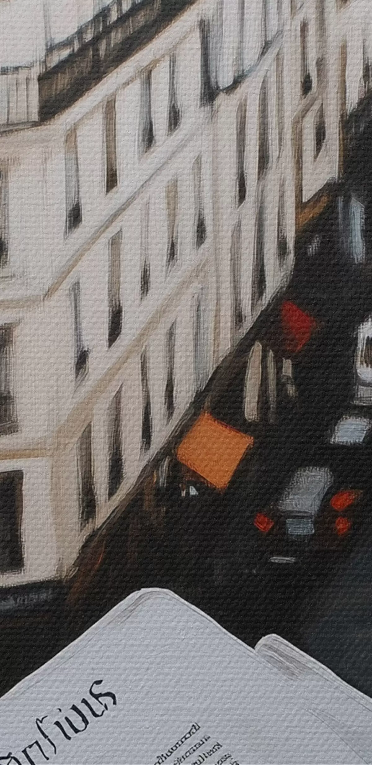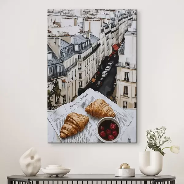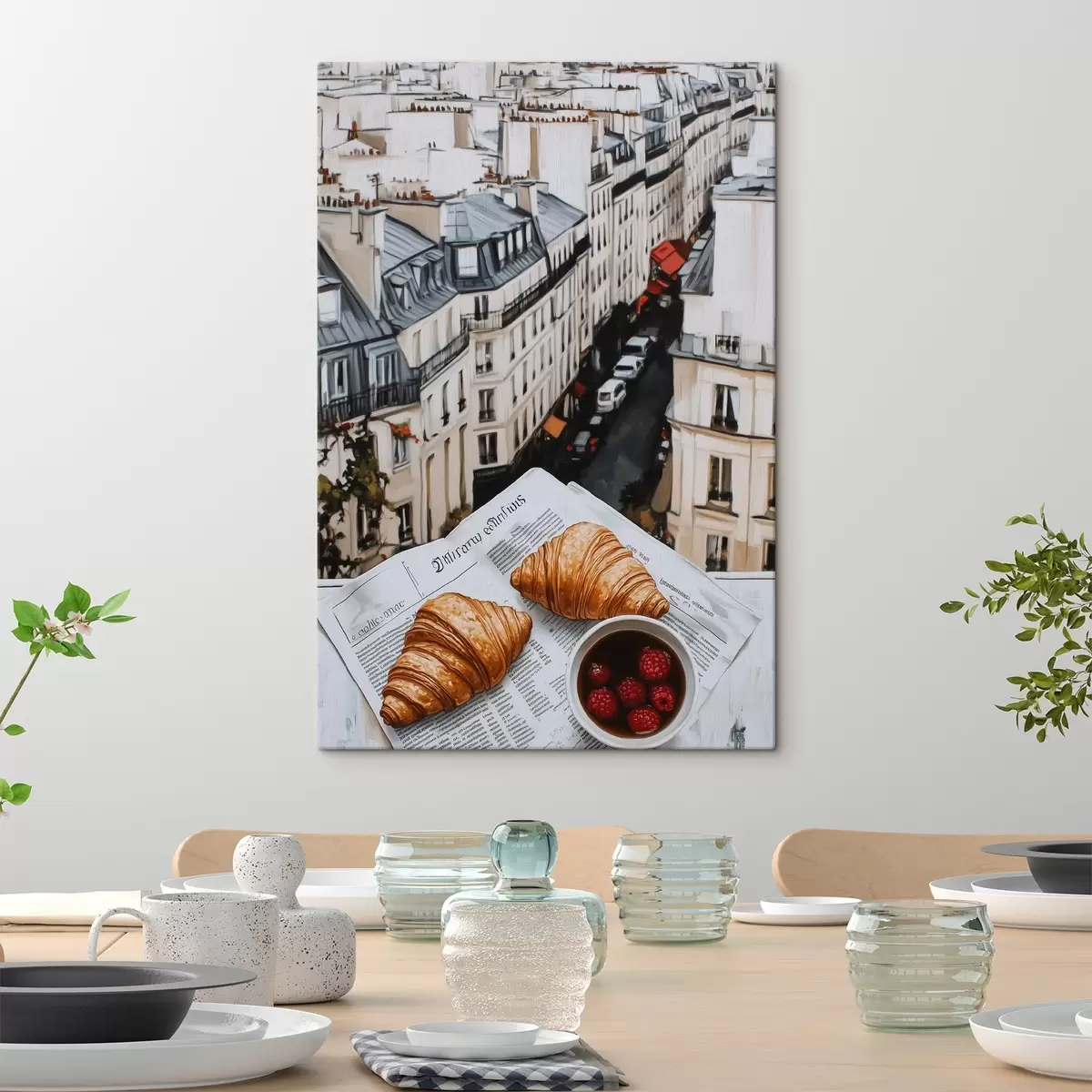 Maalid Hommikukohv croissantidega, linnatänav, arhitektuurne, õlistiilis Nr s43891
