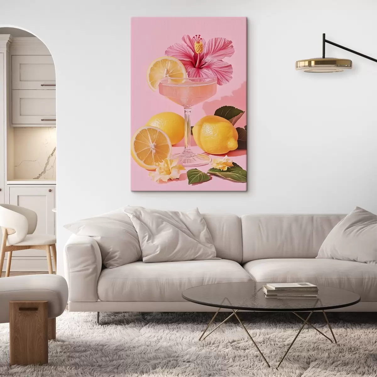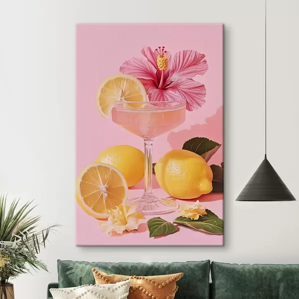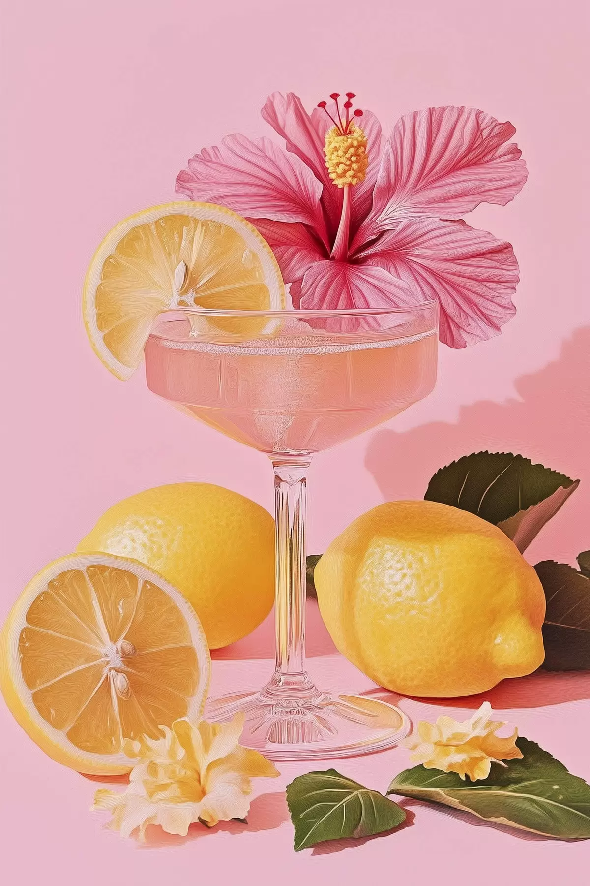 Maalid Roosa kokteil hibiskuslillega, sidrunitega, realismiga Nr s43893