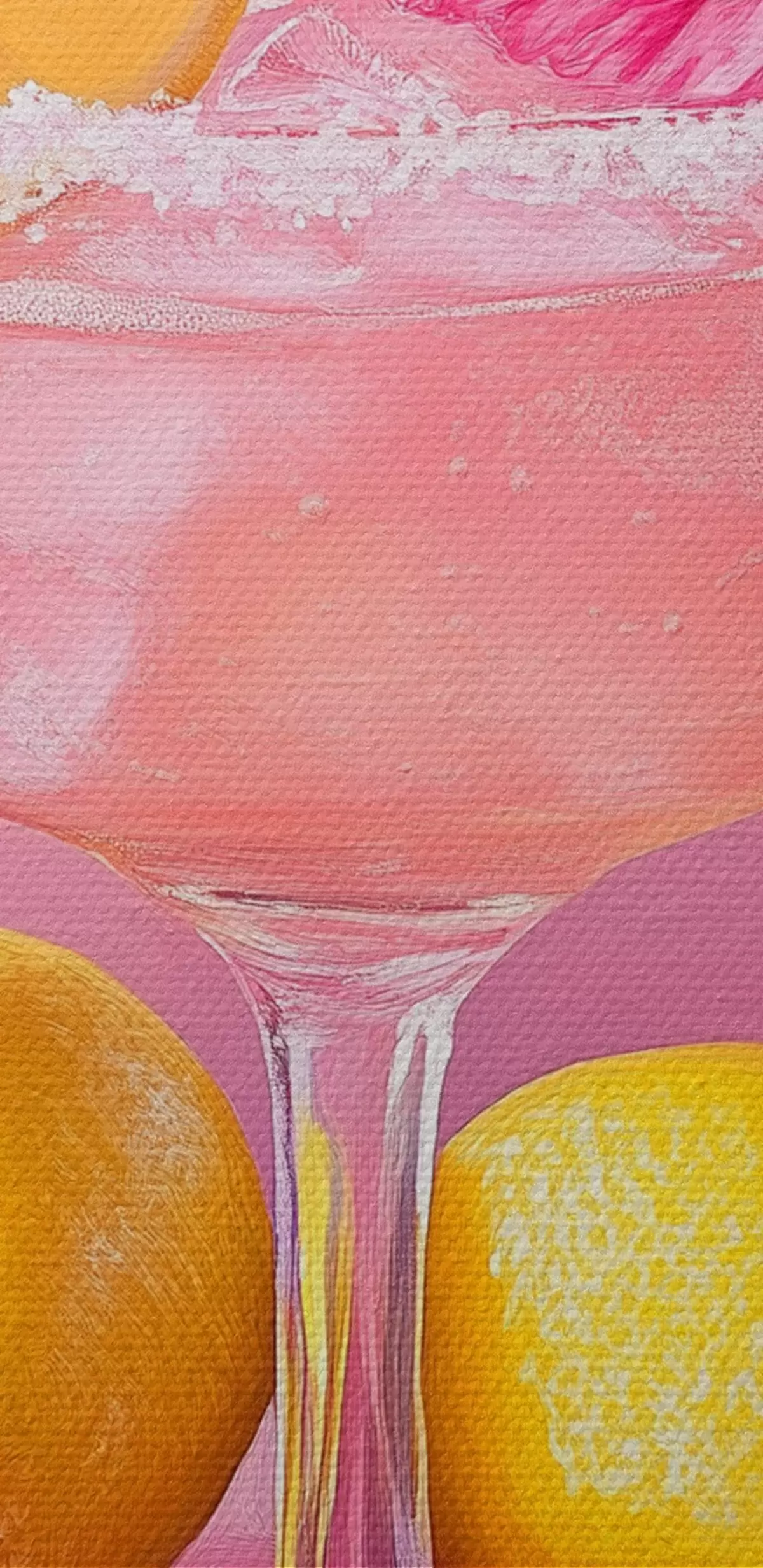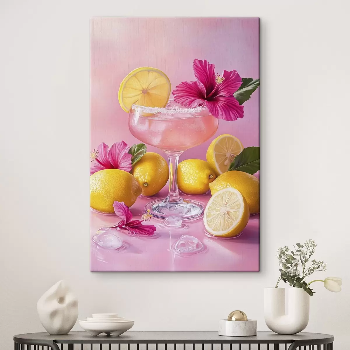 Maalid Suvekokteil lillede ja sidrunitega, roosad värvid, akvarellistiil Nr s43895