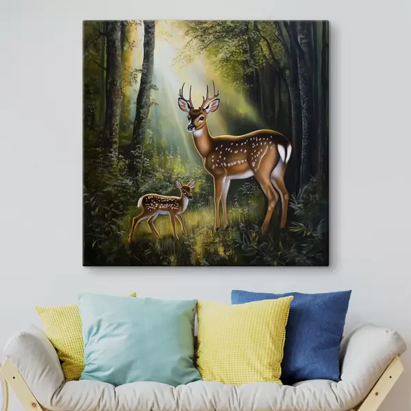Maalid Hirv ja hirvepoeg metsas Nr s43915