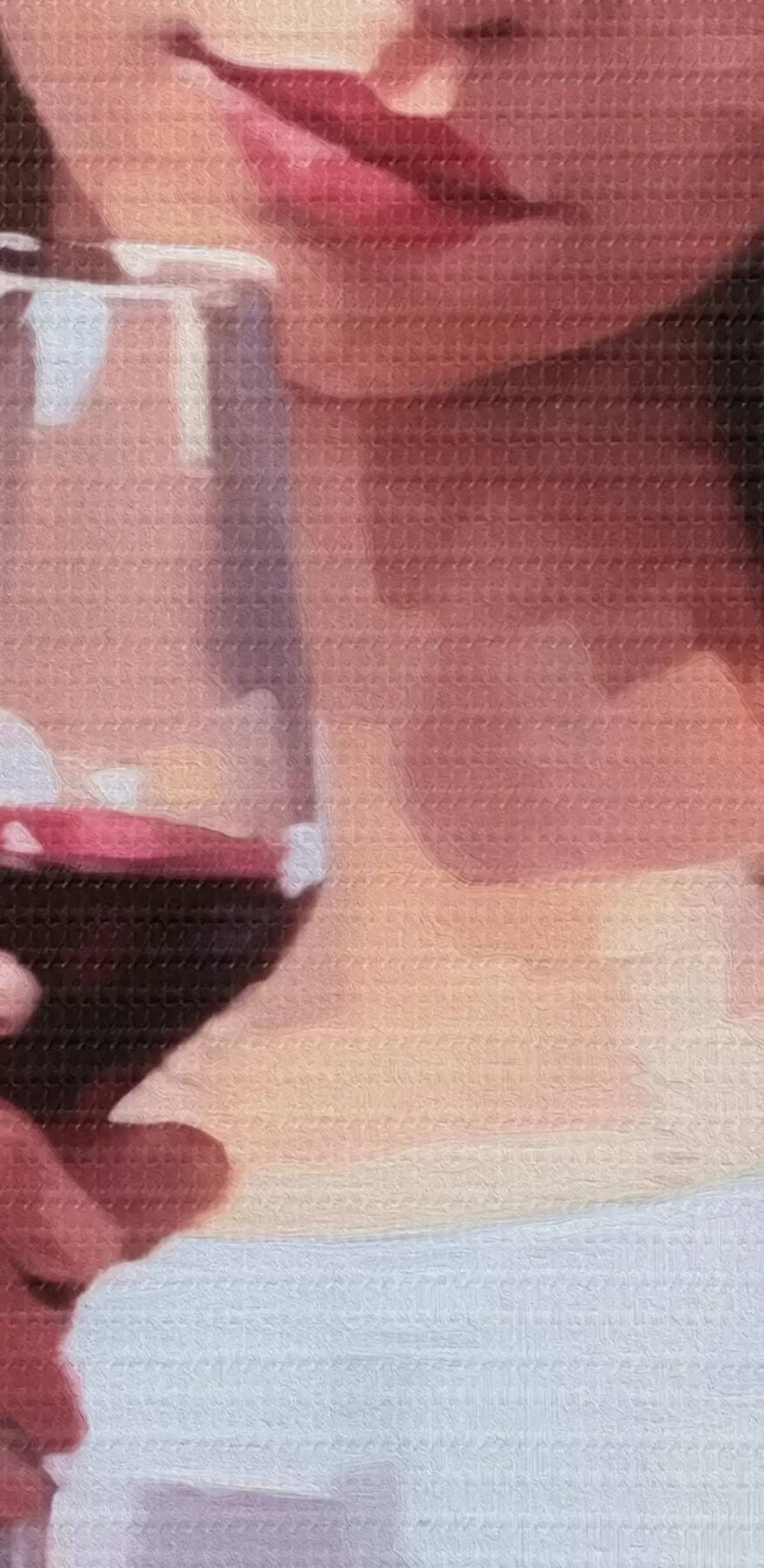 Selle lõuendi peenike niidipunus meenutab professionaalse kunstniku lõuendi pinda.