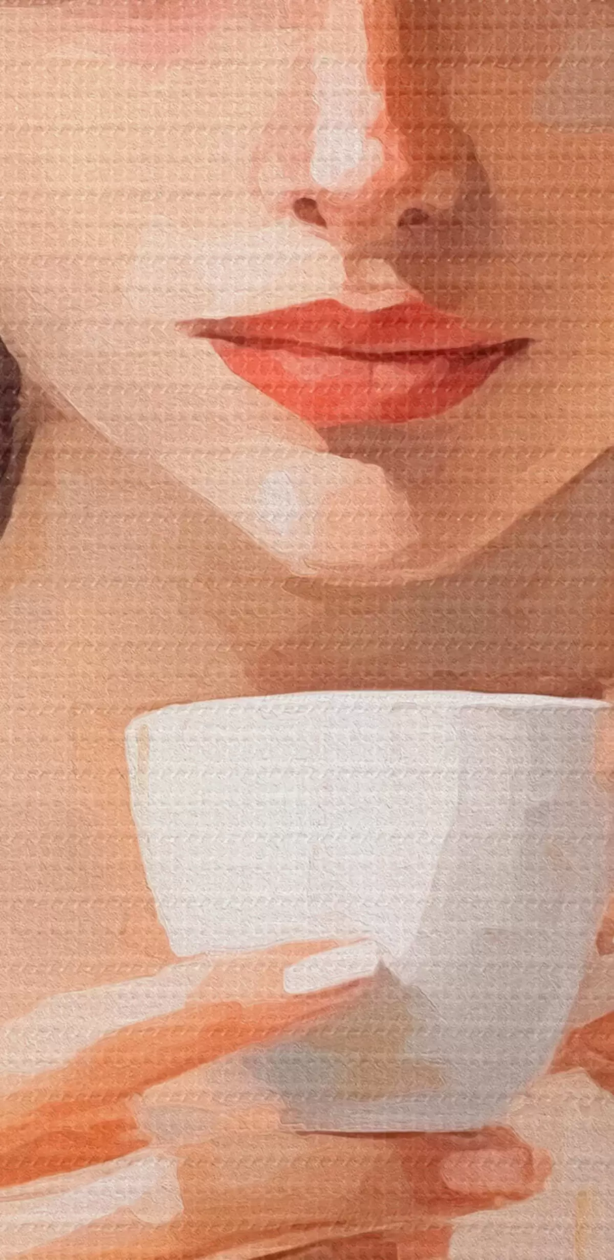 Selle lõuendi peenike niidipunus meenutab professionaalse kunstniku lõuendi pinda.