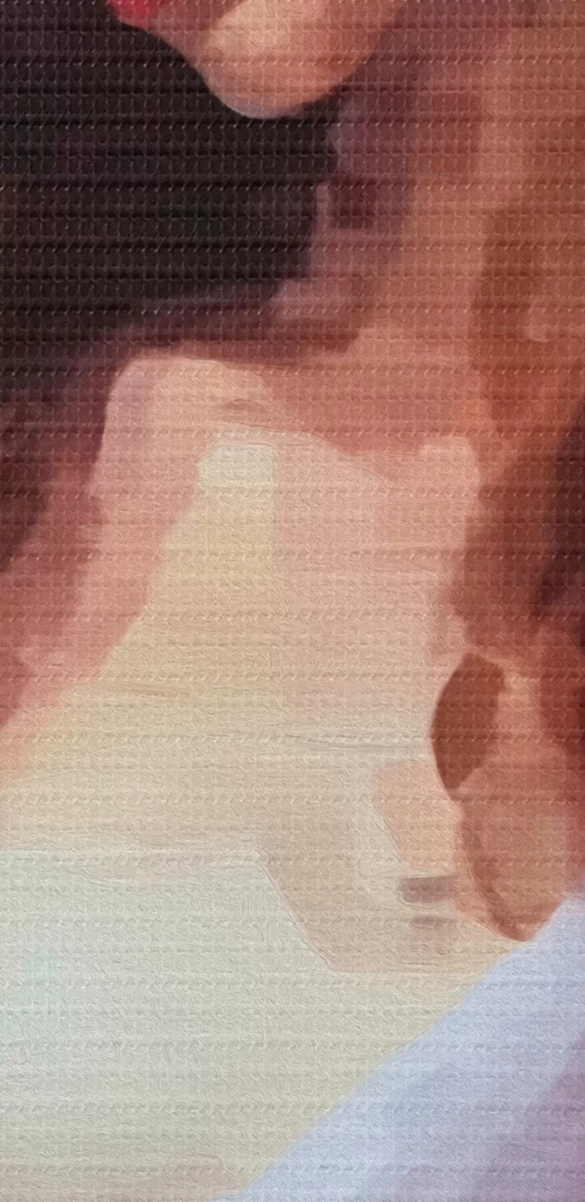 Selle lõuendi peenike niidipunus meenutab professionaalse kunstniku lõuendi pinda.