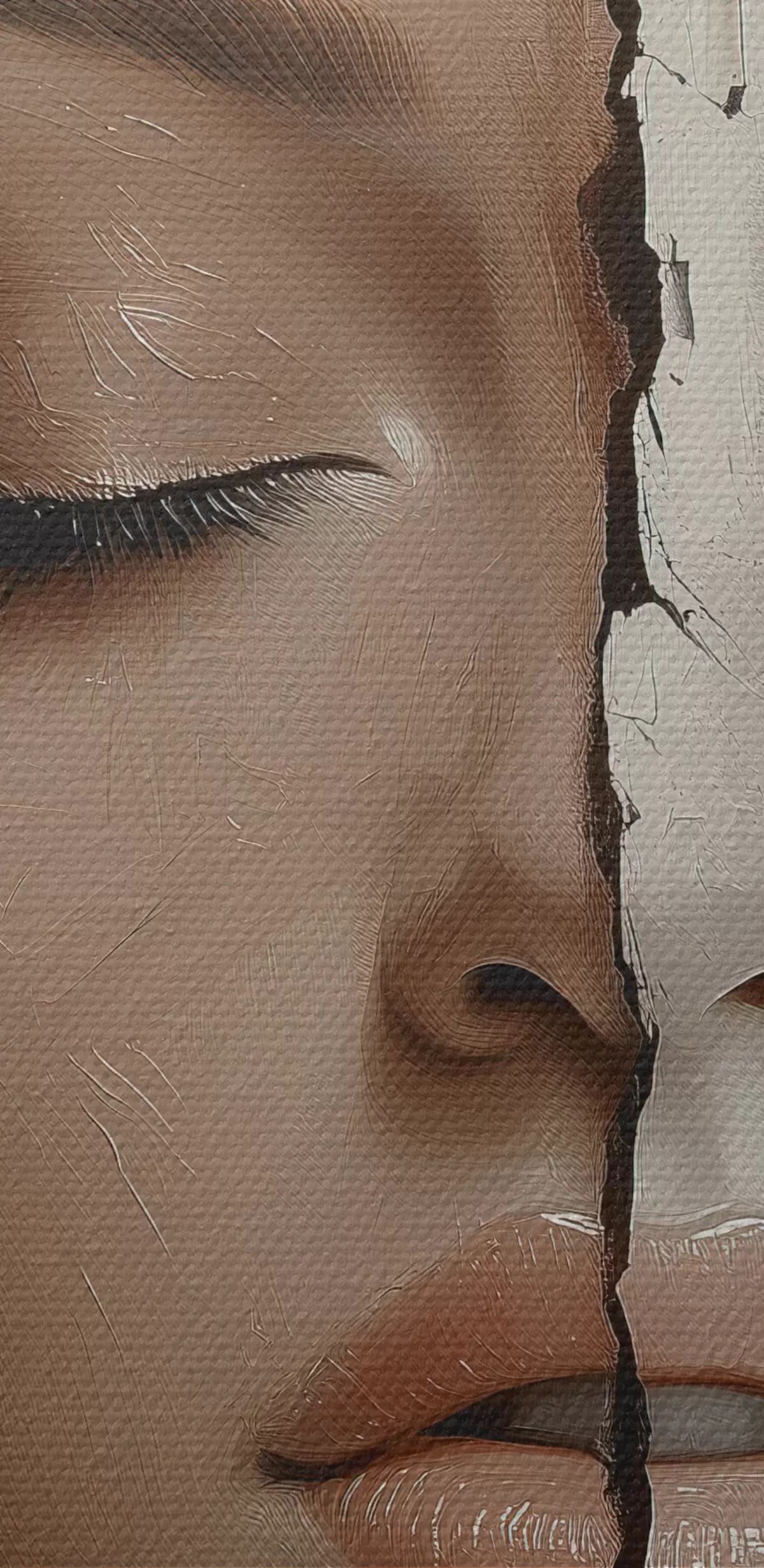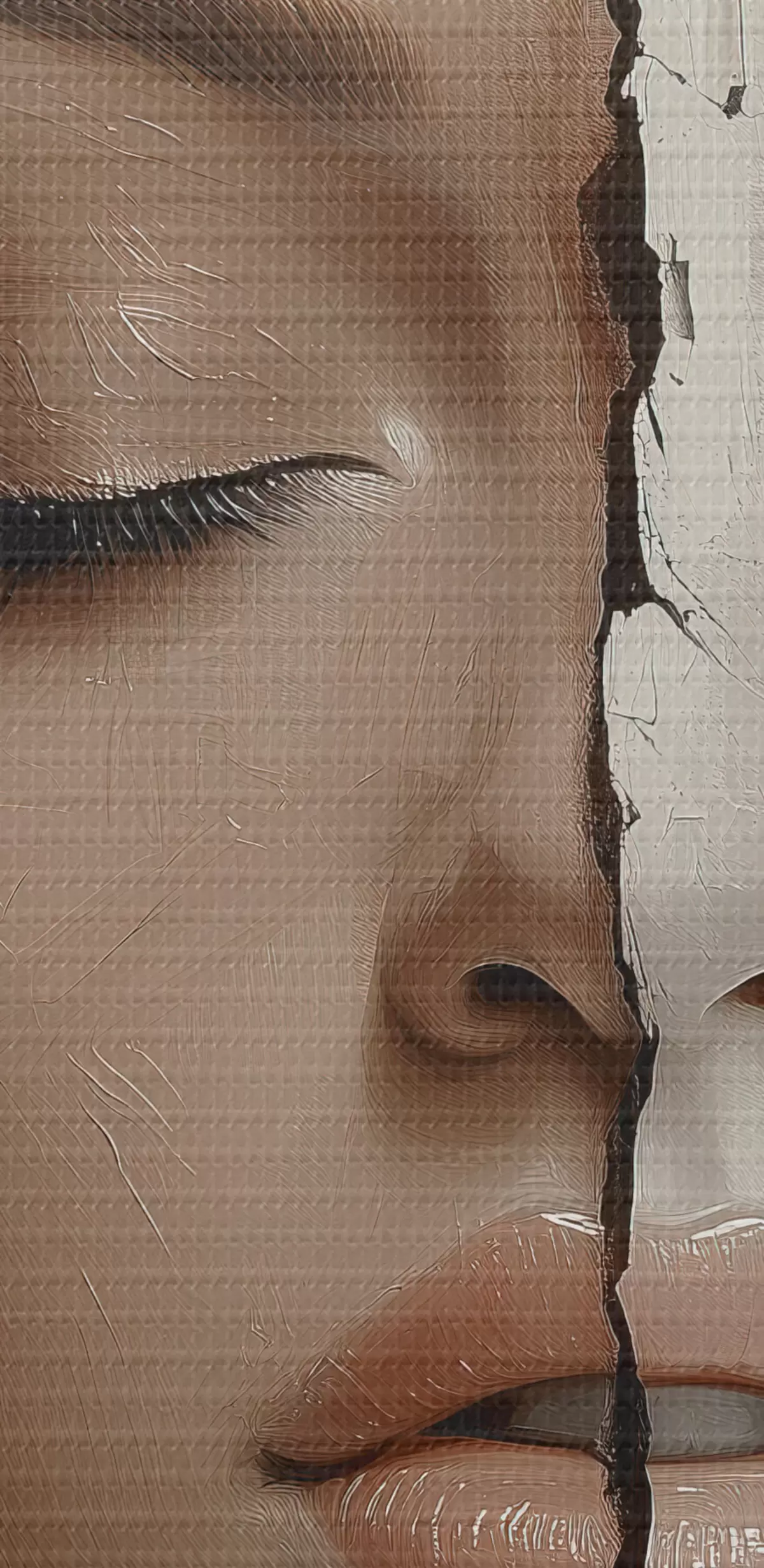 Selle lõuendi peenike niidipunus meenutab professionaalse kunstniku lõuendi pinda.