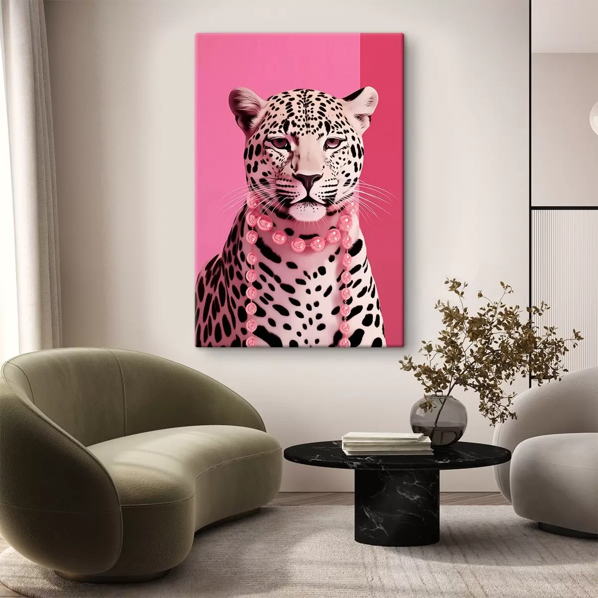 Maalid Leopardi portree koos roosa kaelakeega Nr s43976