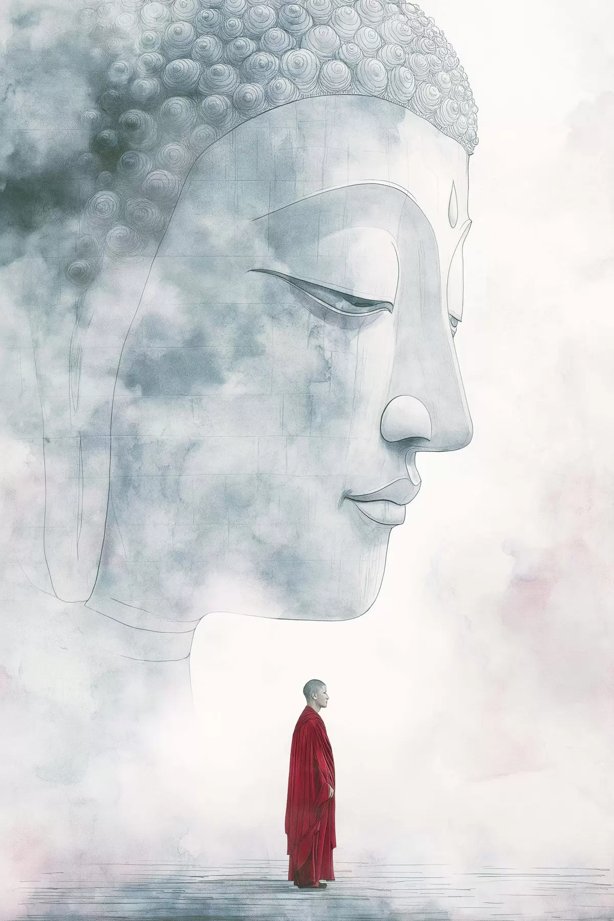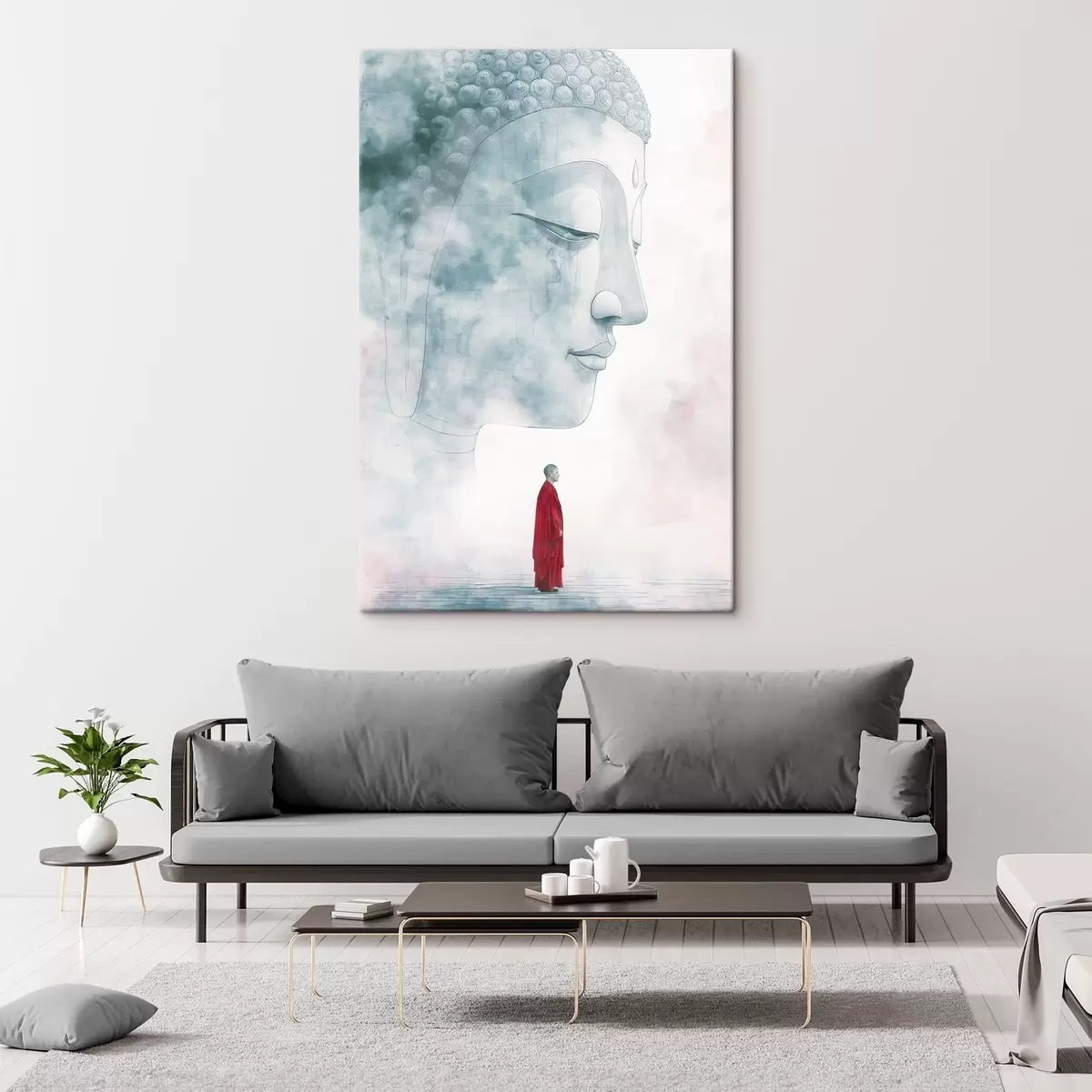 Maalid Budistlik munk punases rüüs, Buddha siluett, akvarellstiilis Nr s44006