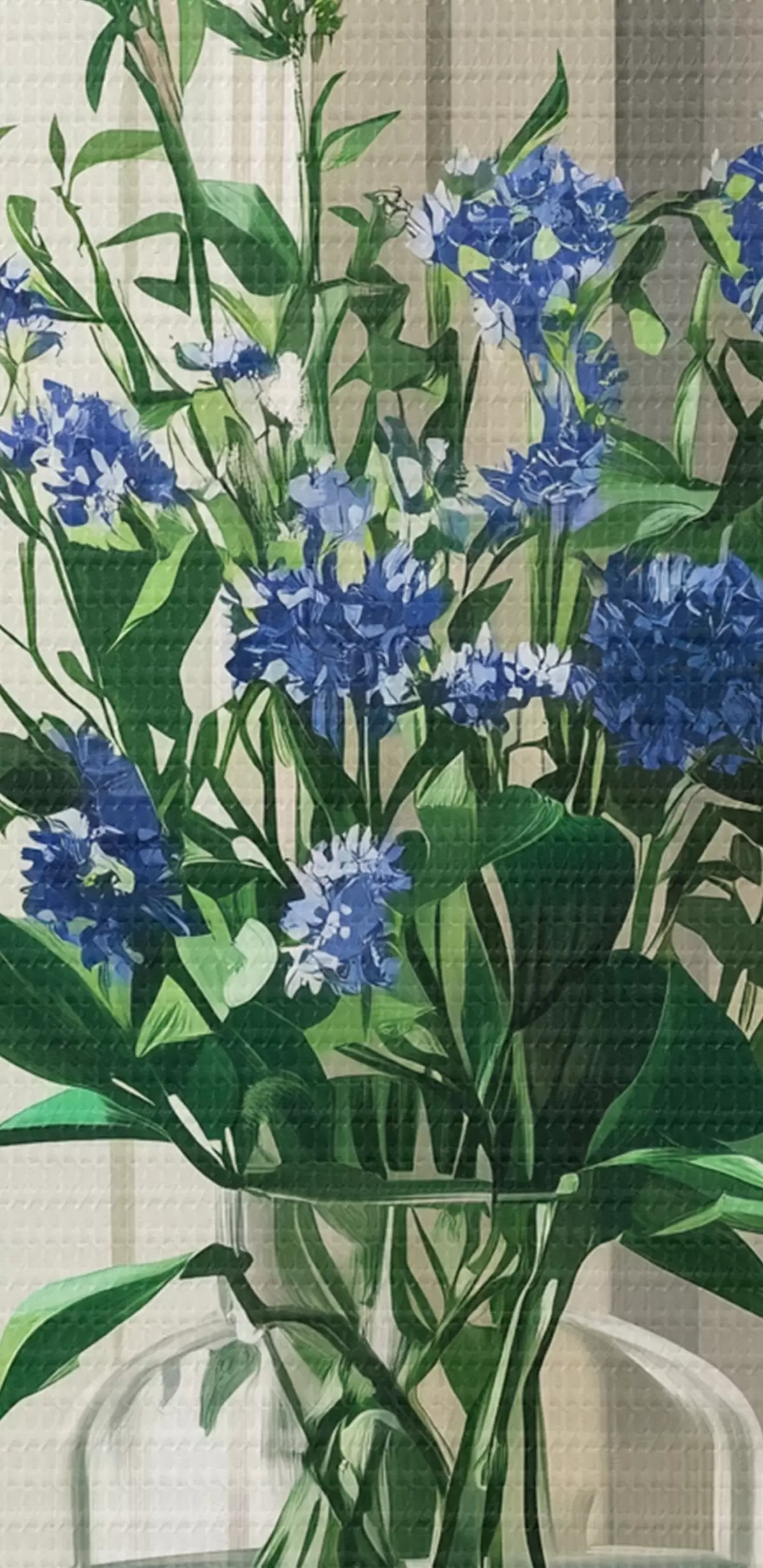 Selle lõuendi peenike niidipunus meenutab professionaalse kunstniku lõuendi pinda.