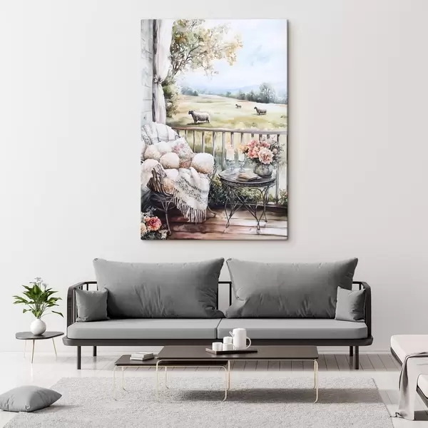 Maalid Talu maal, lambad, põllud, maalilised lilled, akvarellstiilis Nr s44014