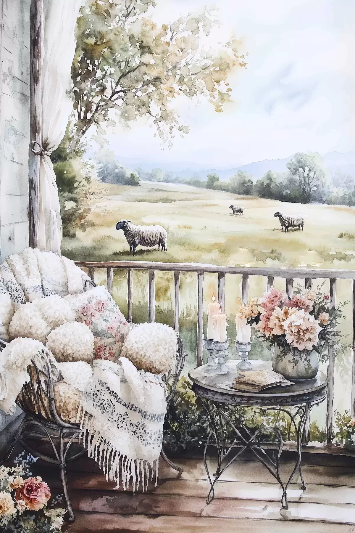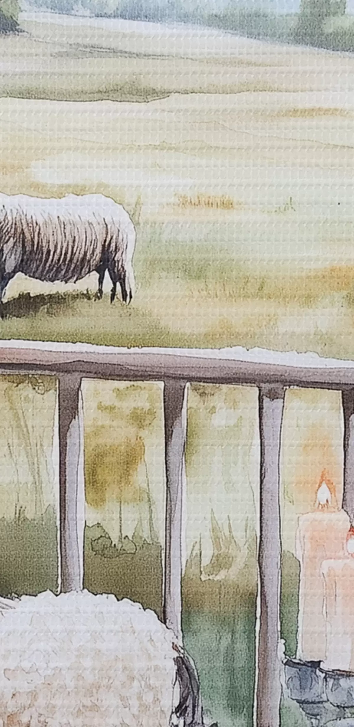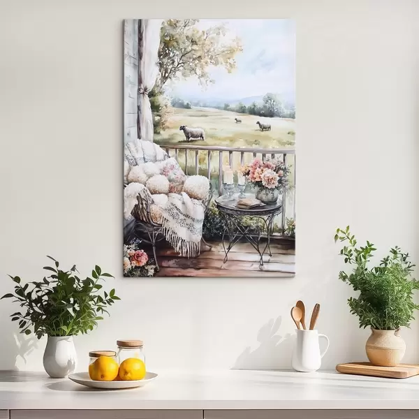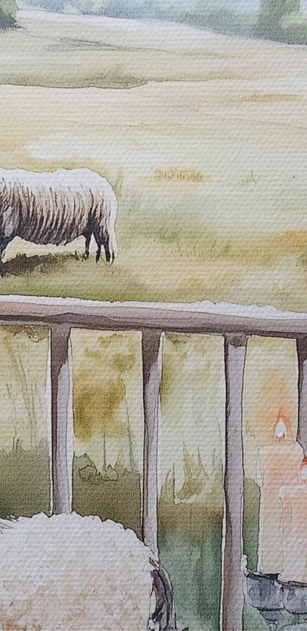 Maalid Talu maal, lambad, põllud, maalilised lilled, akvarellstiilis Nr s44014