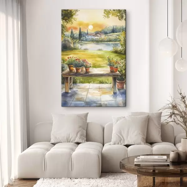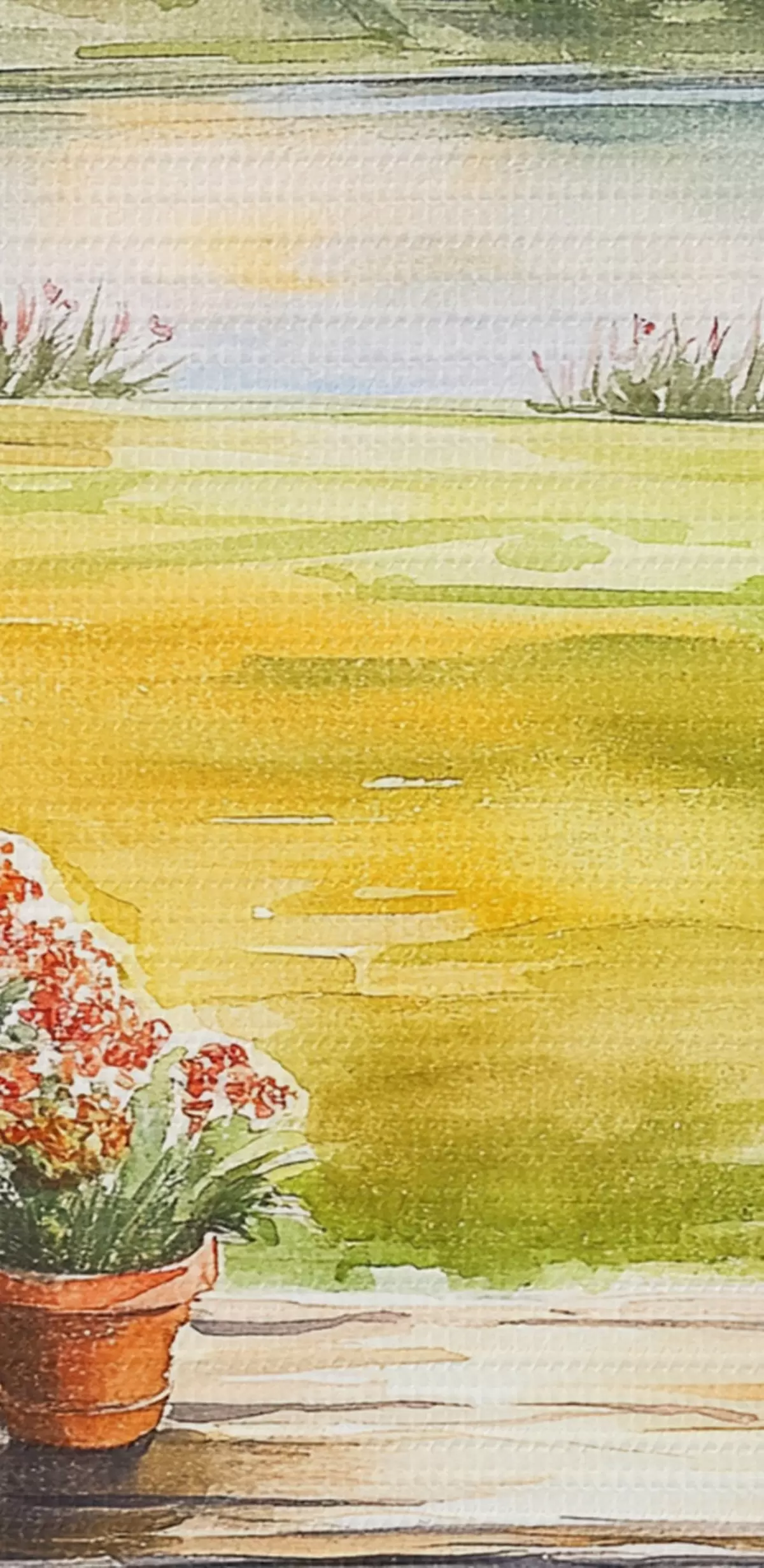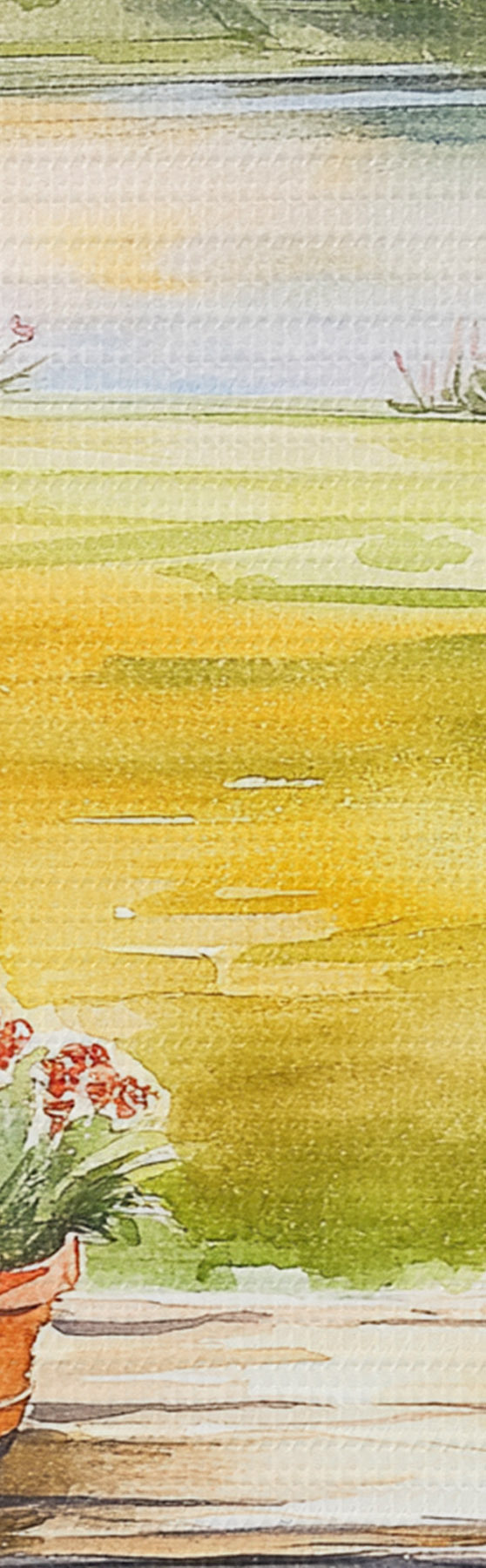 Maalid Küla päikeseloojangul, maaliline, suvelilled, järv, akvarellstiil Nr s44016