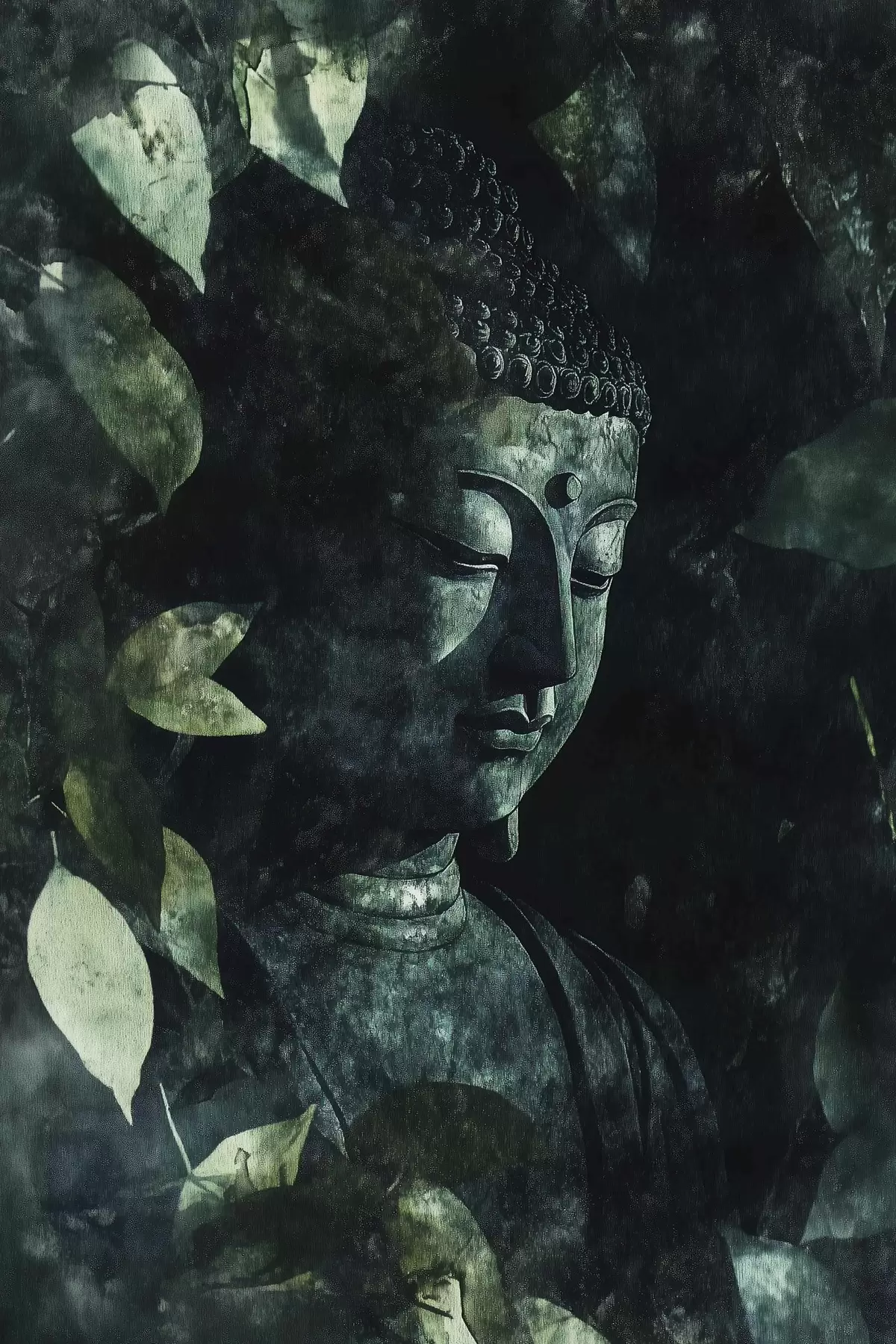 Maalid Meditatiivne Buddha rohelistes lehtedes, vaimne Nr s44029