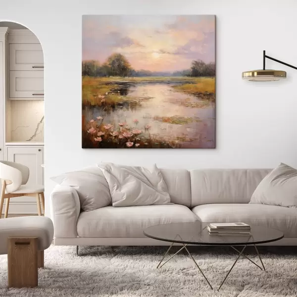 Maalid Lilledega veekogu päikeseloojangul Nr s44044