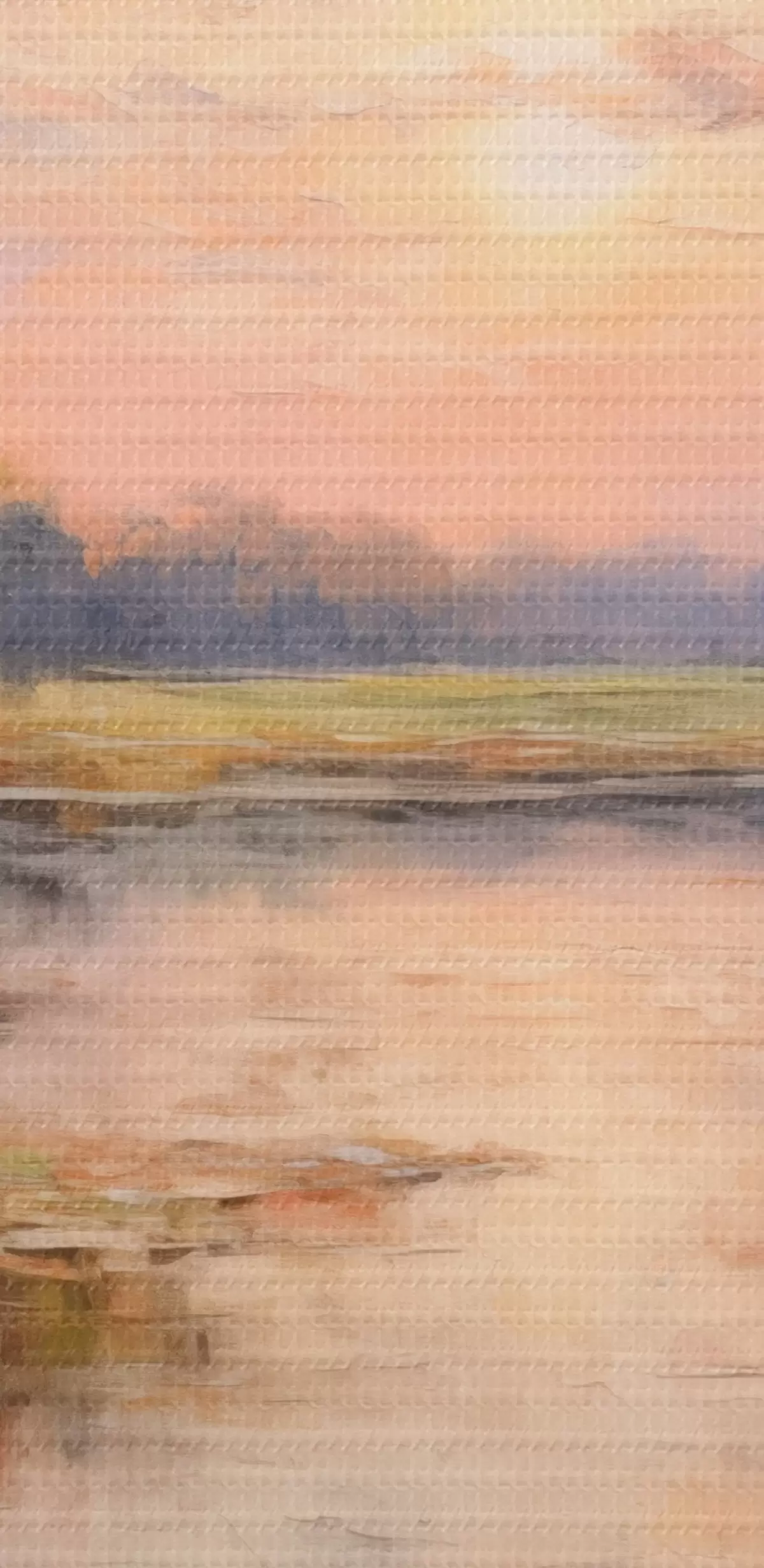 Selle lõuendi peenike niidipunus meenutab professionaalse kunstniku lõuendi pinda.