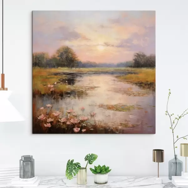 Maalid Lilledega veekogu päikeseloojangul Nr s44044