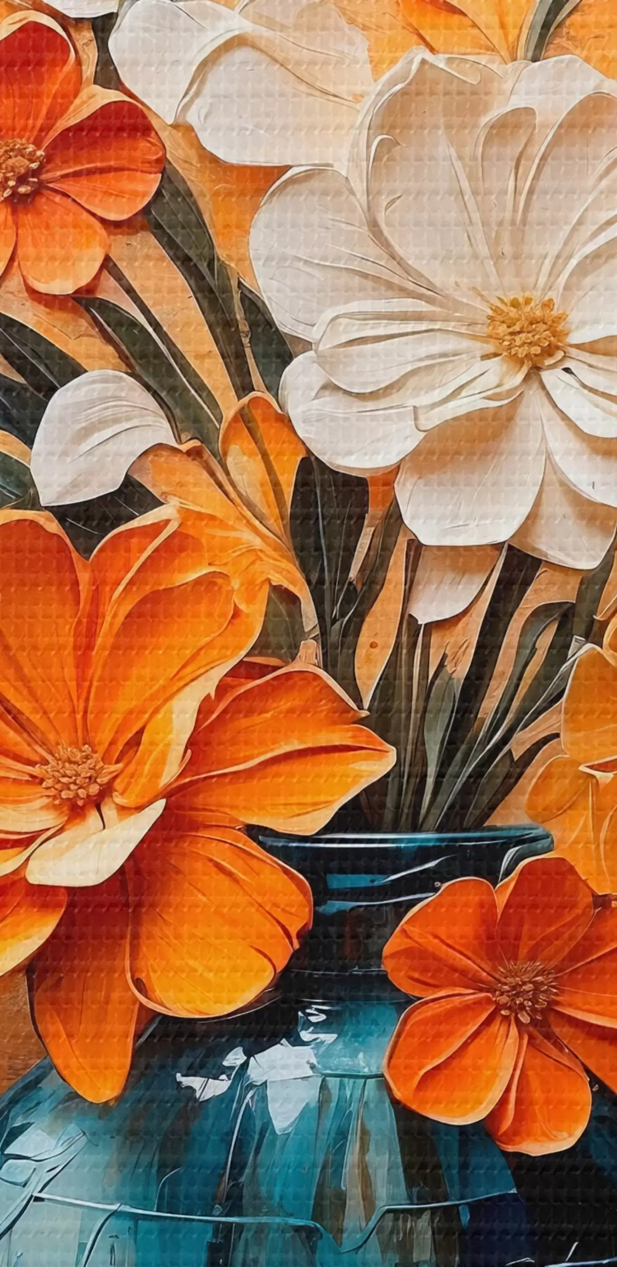 Maalid Valged ja oranžid lilled vaasis õlimaalide stiilis Nr s44059