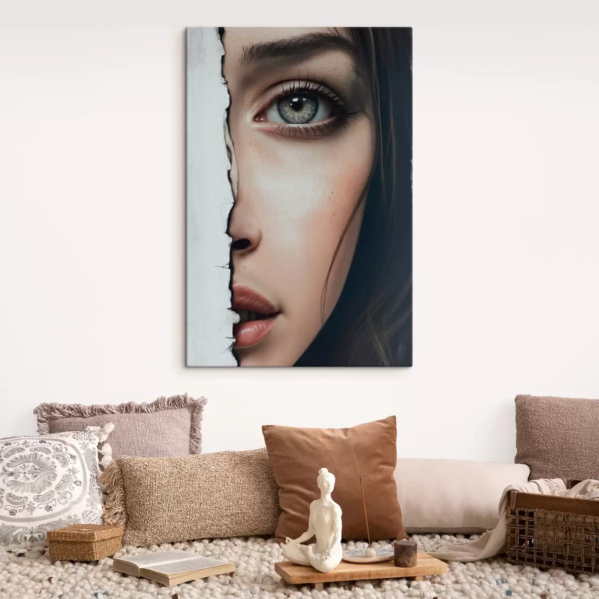 Maalid Tüdruku nägu valge seina taga Nr s44083