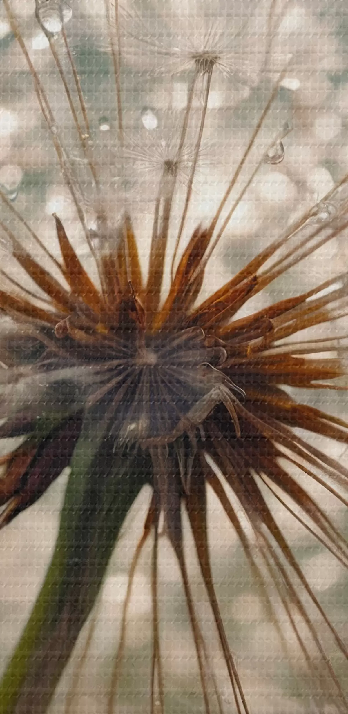 Selle lõuendi peenike niidipunus meenutab professionaalse kunstniku lõuendi pinda.