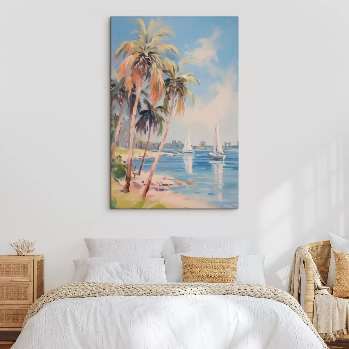 Maalid Palmipuud lahe ääres imitatsiooni maalimine Nr s44122