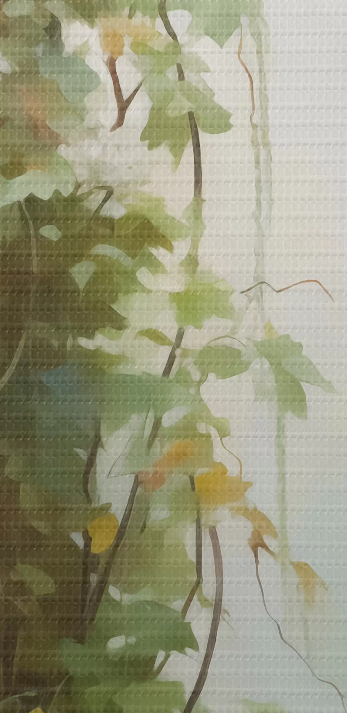 Selle lõuendi peenike niidipunus meenutab professionaalse kunstniku lõuendi pinda.