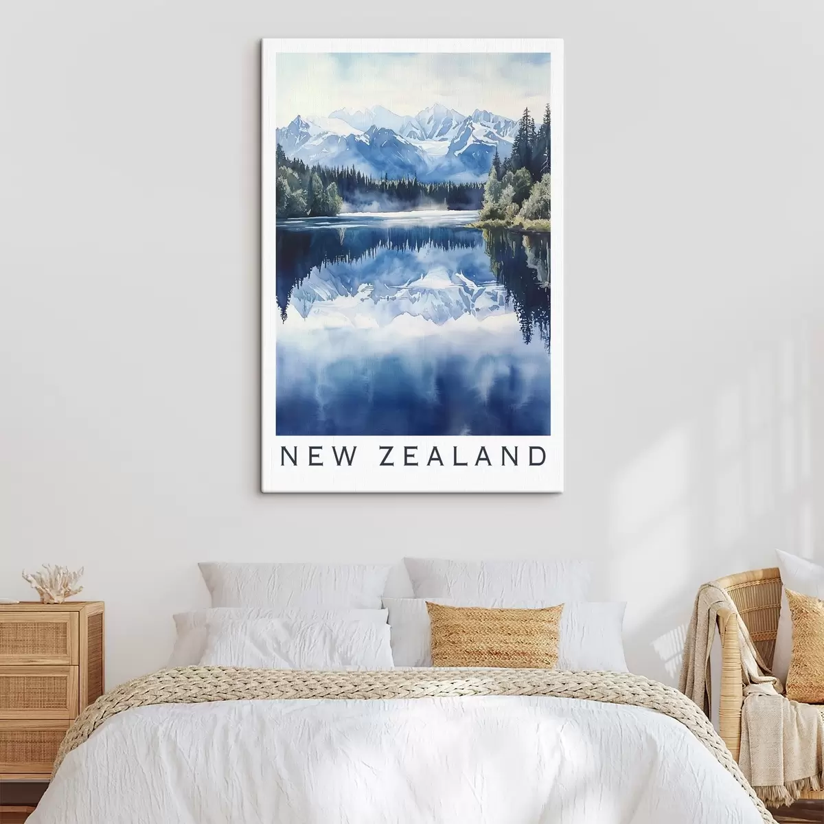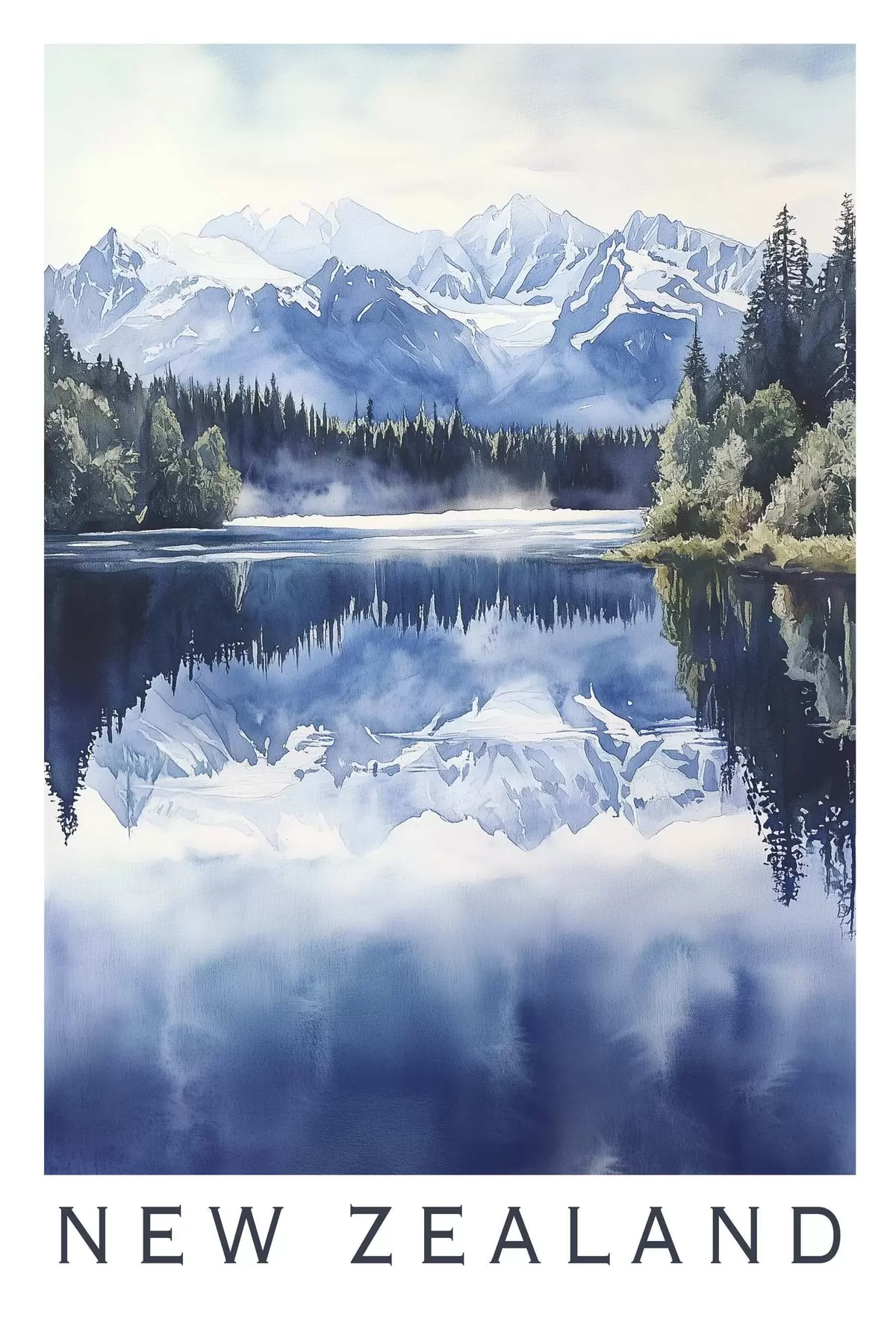 Maalid Ilusad mäed Uus-Meremaal, akvarellstiilis, järv, mets Nr s44144