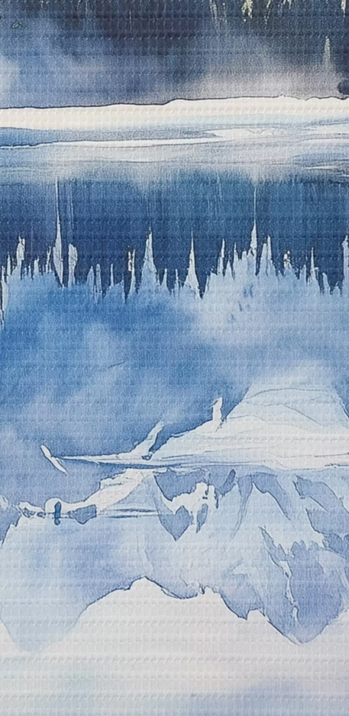 Selle lõuendi peenike niidipunus meenutab professionaalse kunstniku lõuendi pinda.