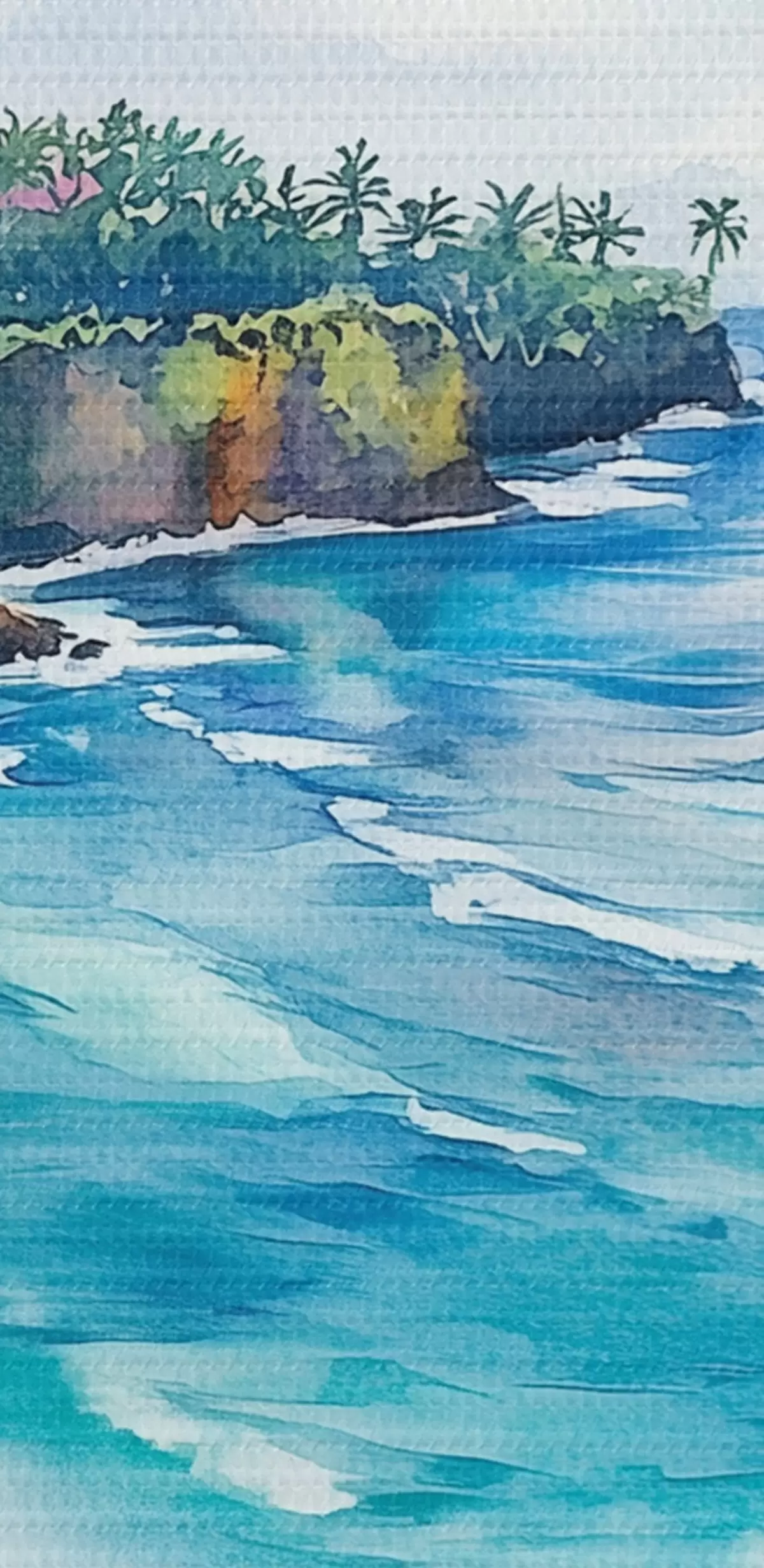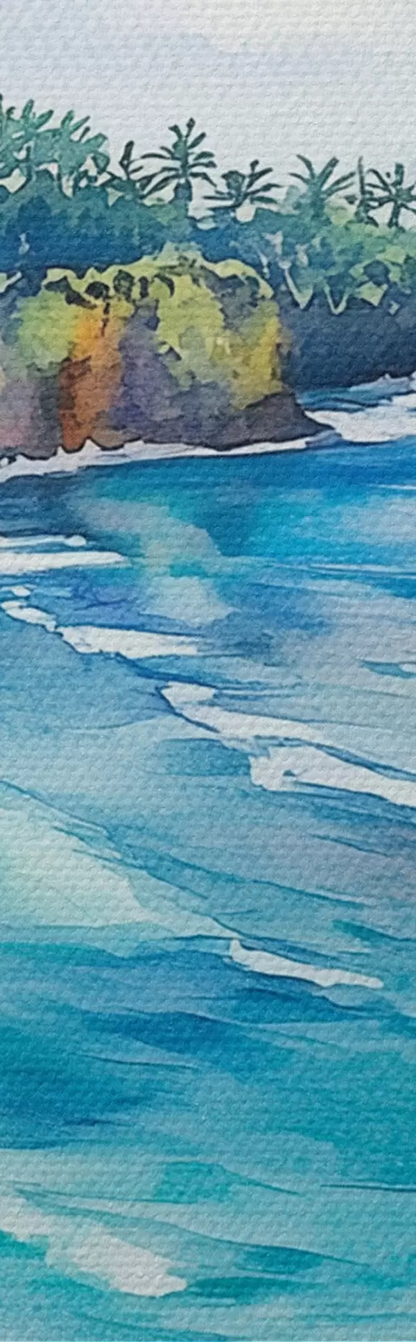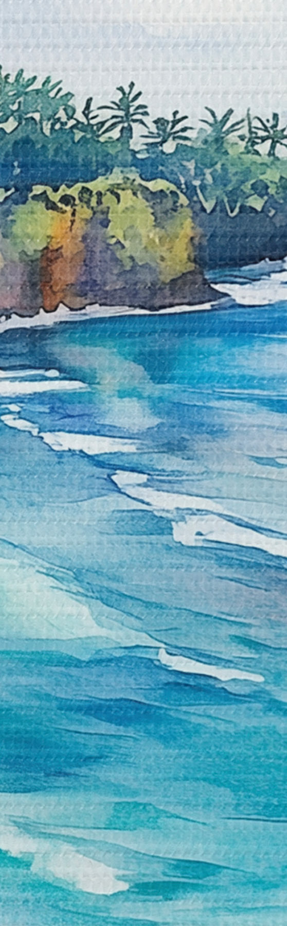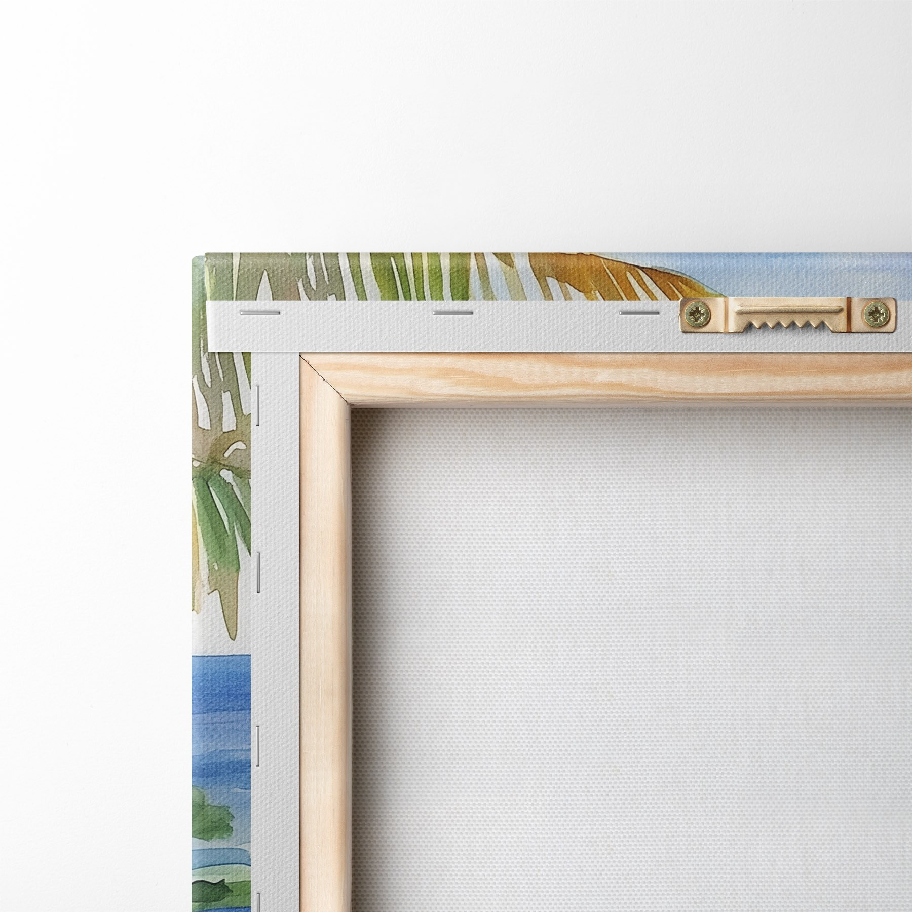 Maalid Troopiline ookeanirand, palmipuud, lilled, akvarellstiil Nr s44145