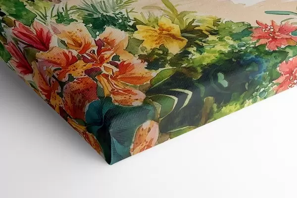 Maalid Troopiline ookeanirand, palmipuud, lilled, akvarellstiil Nr s44145