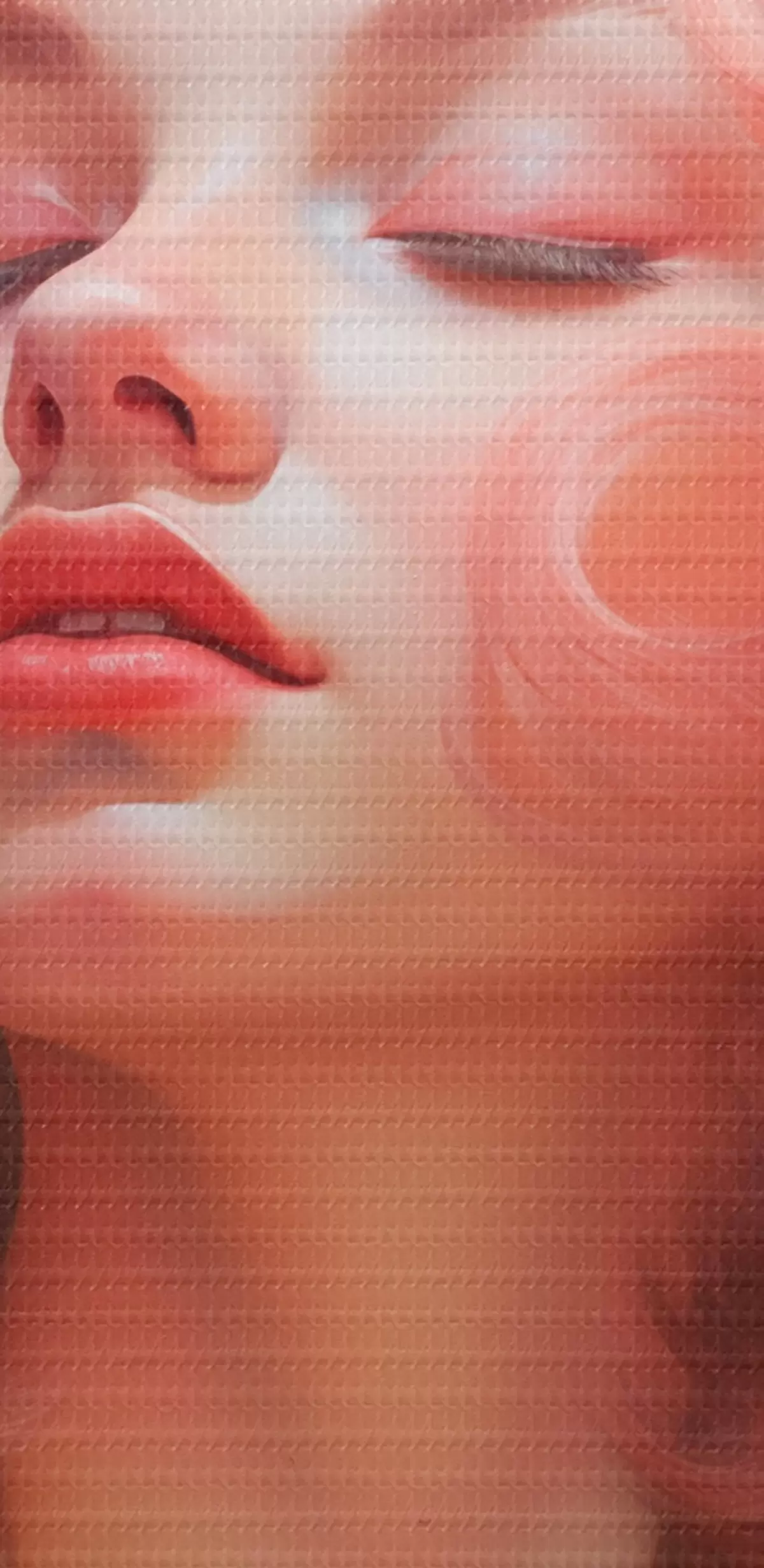Selle lõuendi peenike niidipunus meenutab professionaalse kunstniku lõuendi pinda.